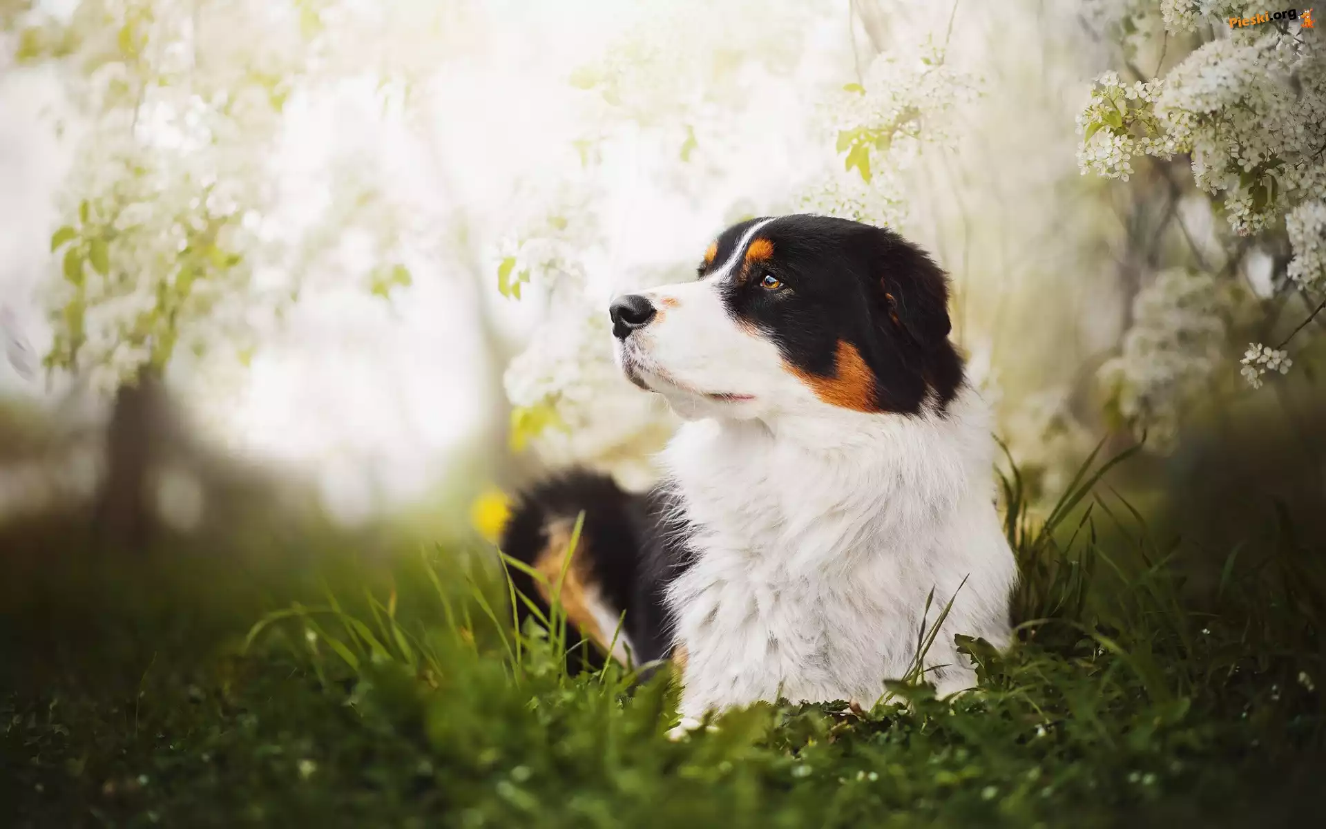 Australian shepherd, Leżący, Owczarek Australijski, Kwiaty