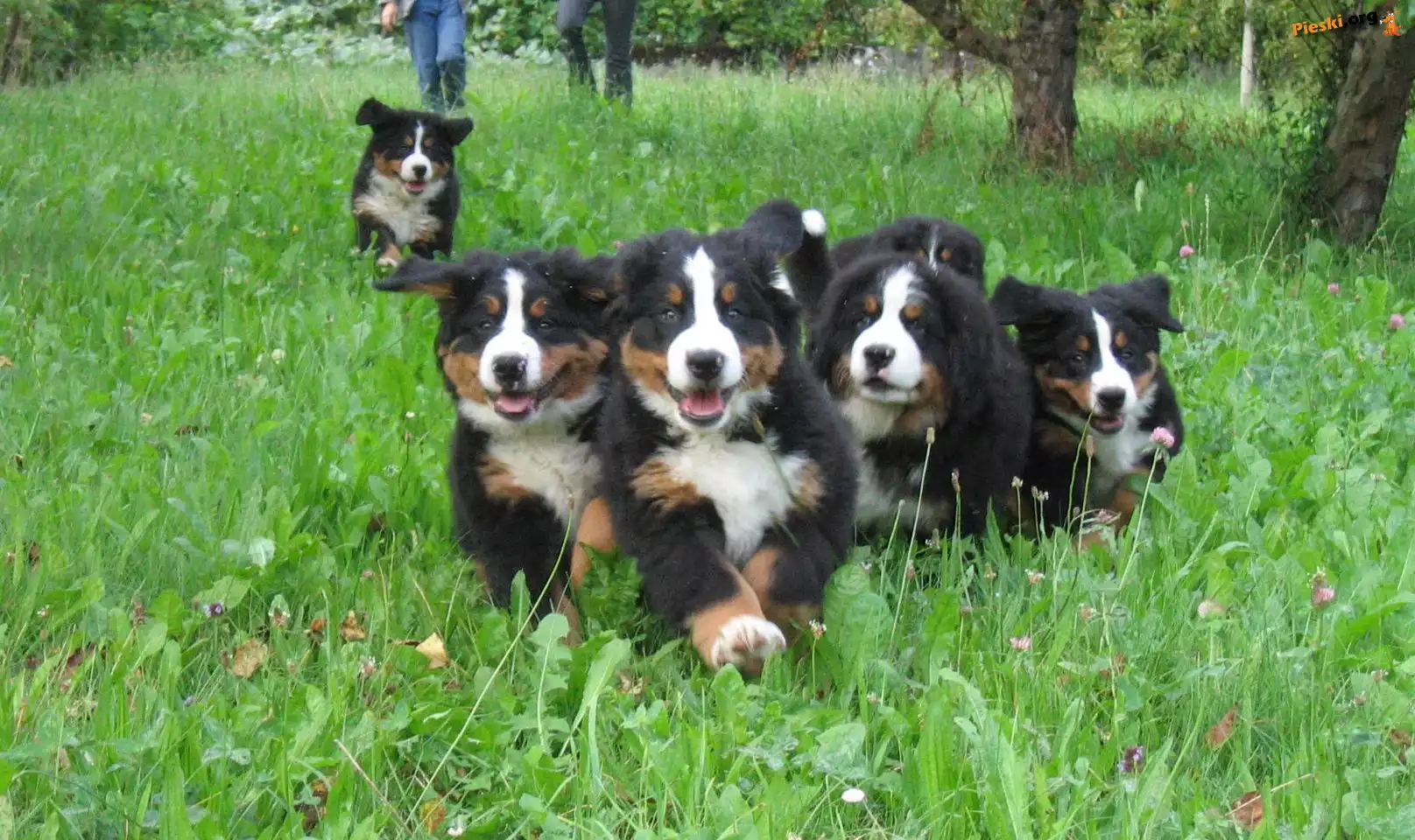 Berneńskie psy pasterskie, zielona, trawa