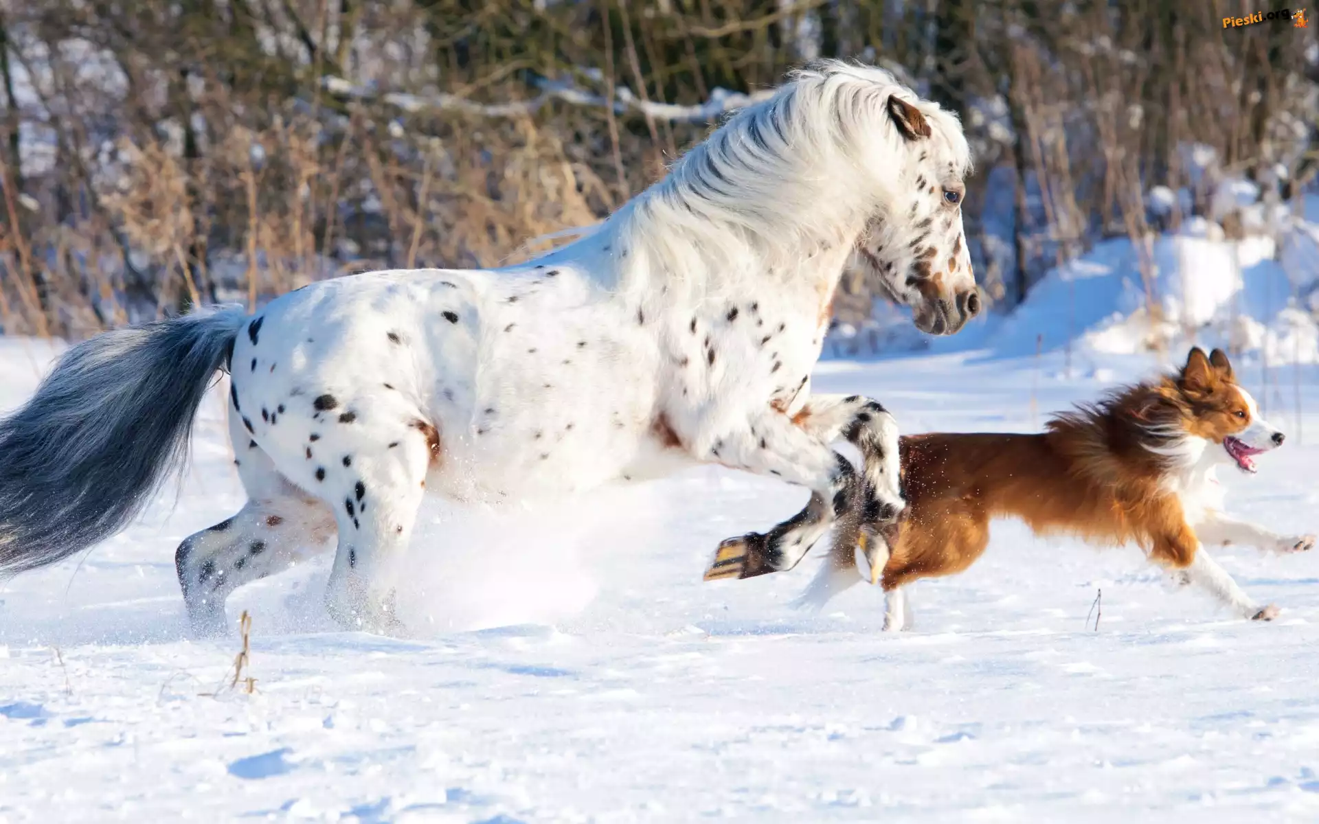 Border collie, Biegnący, Koń Appaloosa, Śnieg