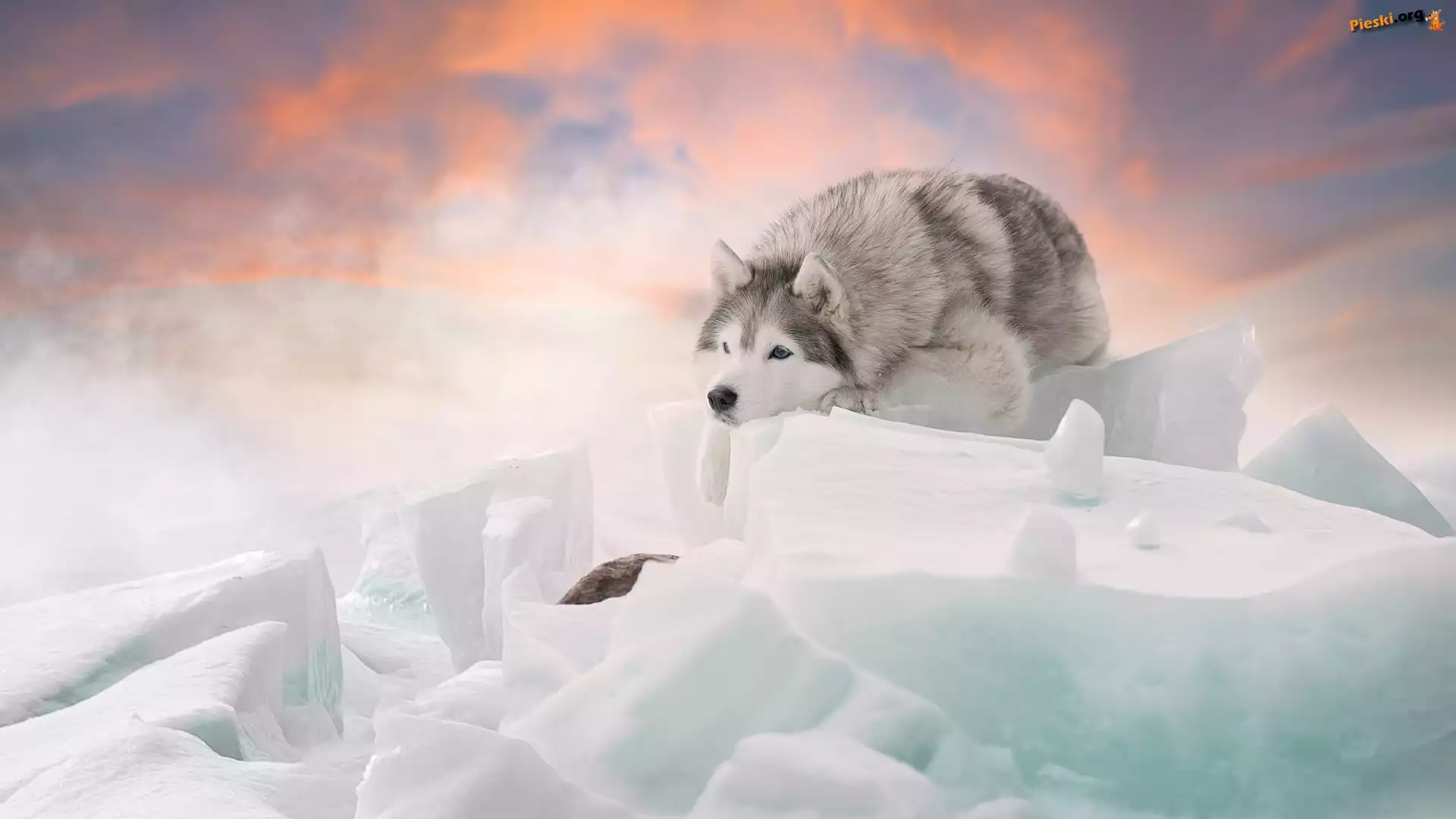 Bryły, Siberian husky, Pies, Śnieg, Zima