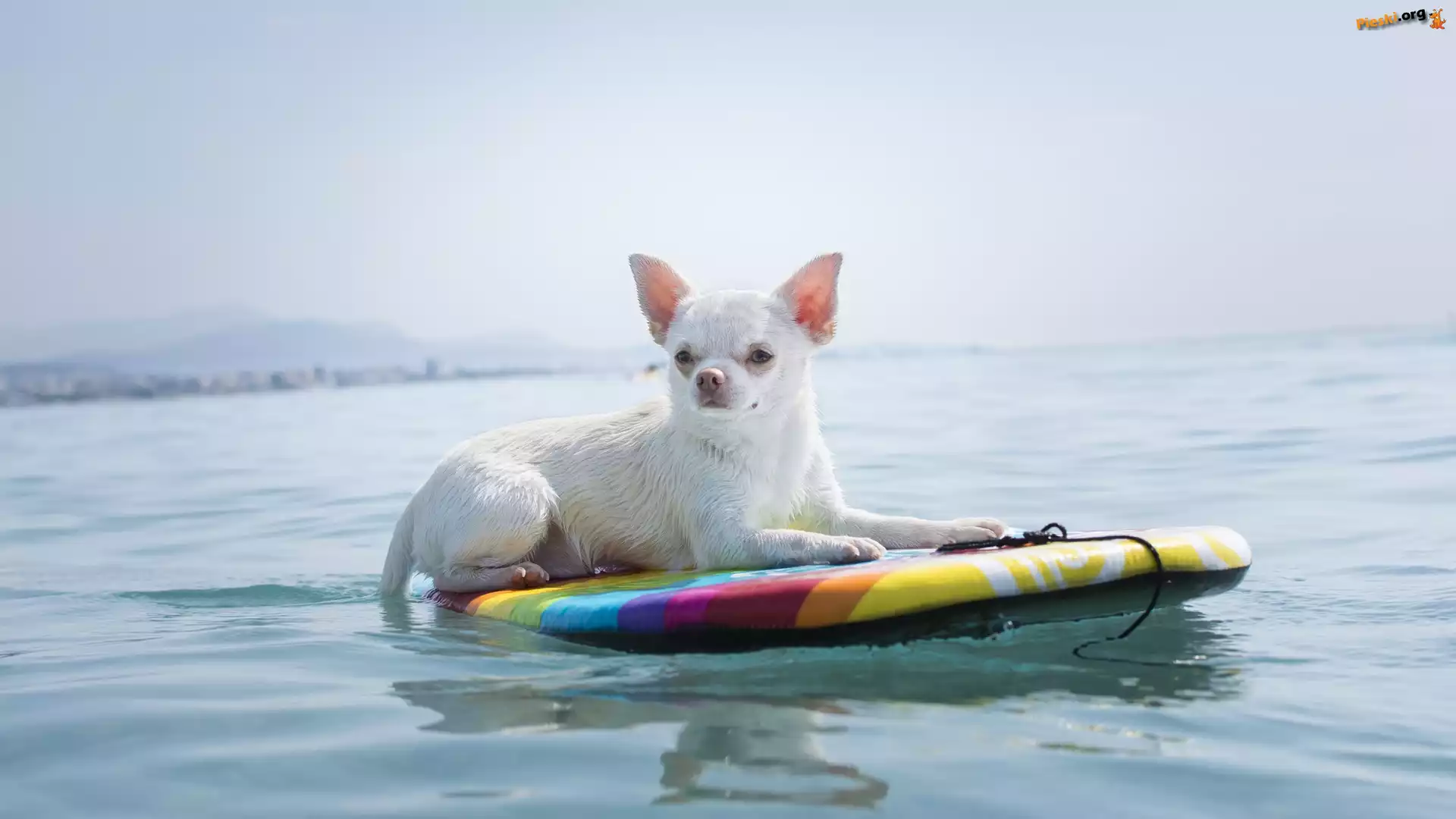 Deska, Pies, Chihuahua krótkowłosa, Woda, Pieski