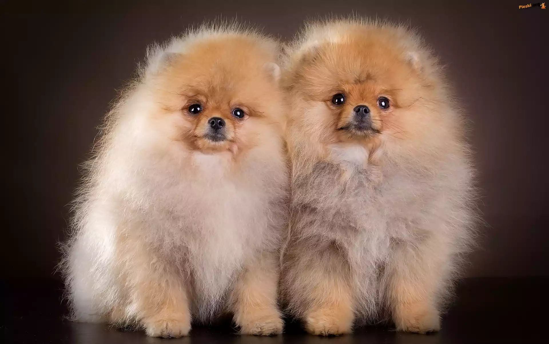 Dwa, Szczeniaki, Szpice miniaturowe, Pieski