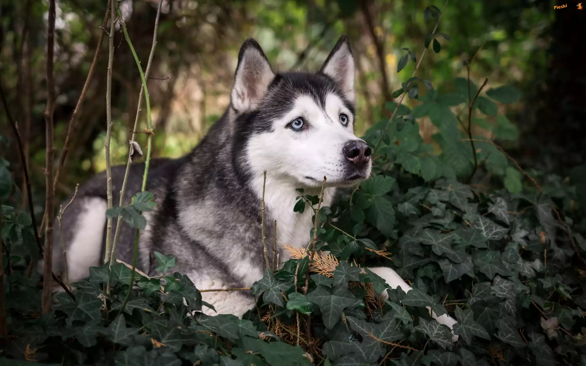 Gałązki, Siberian husky, Rośliny, Bluszcz