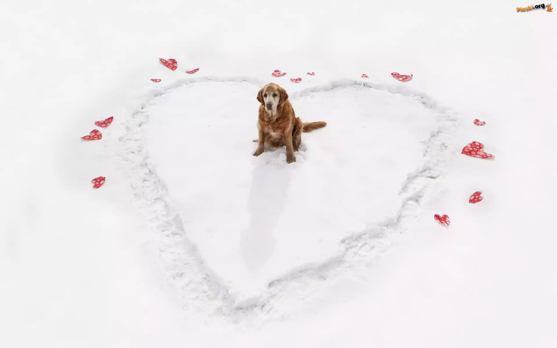 Śnieg, Serce, Golden Retriever