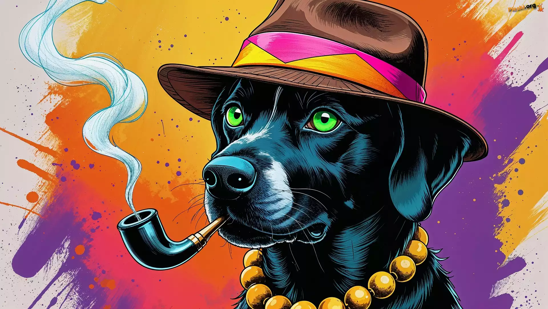 Korale, Grafika, Pies, Fajka, Kapelusz, Pieski
