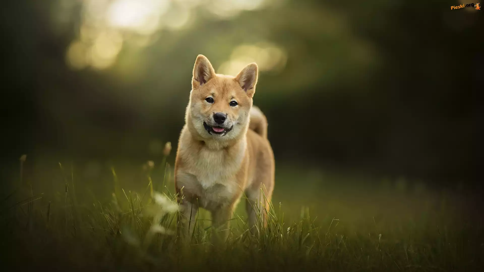 Łąka, Pies, Shiba inu, Trawa, Pieski