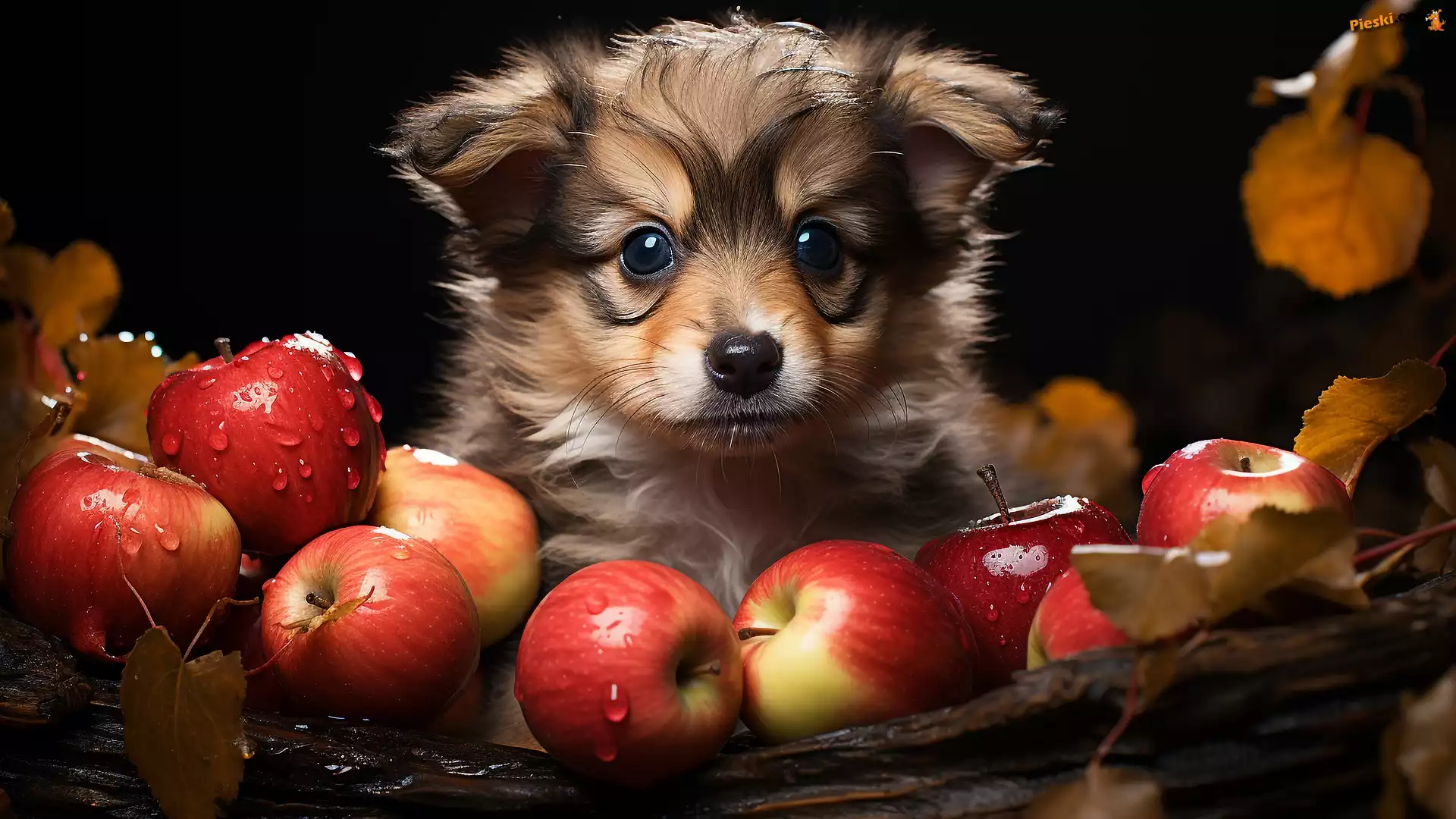 Jabłka, Szczeniak, Pies, Pieski