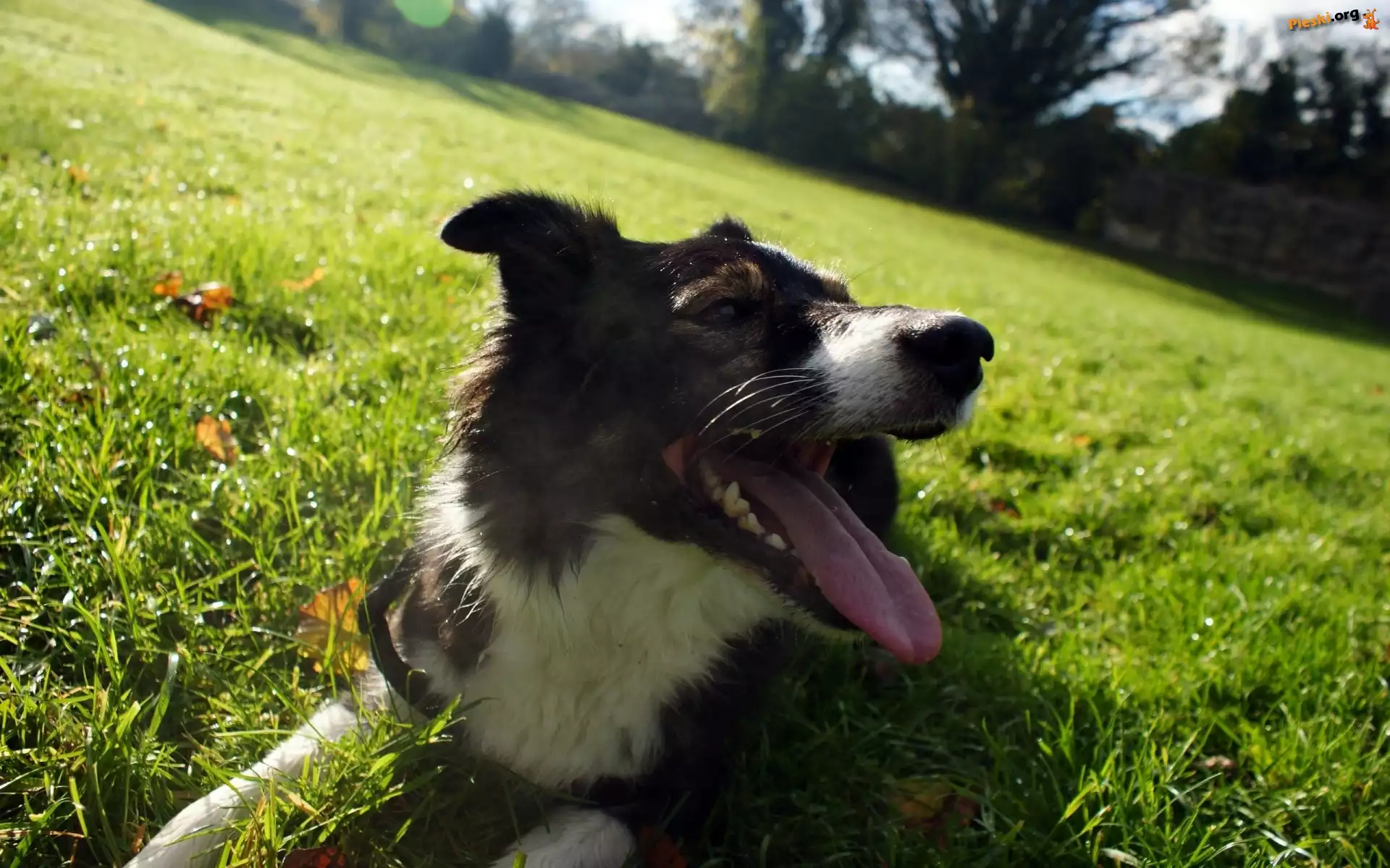Łąka, Wystający, Pies, Język, Drzewa