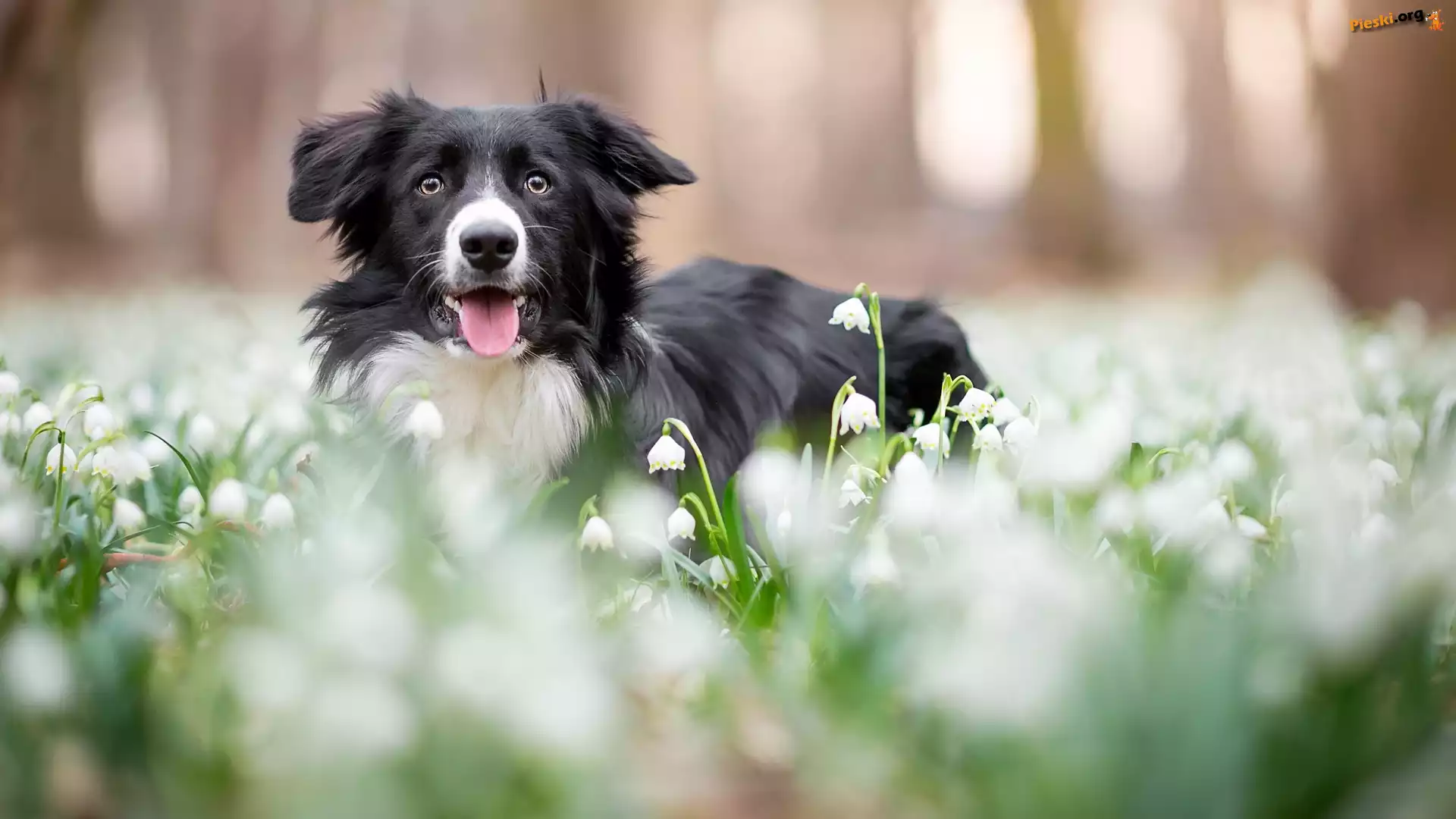 Rozmyte, ka, Border collie, Kwiaty, To Leonberger, Chopiec, Pies, Plaa ka, Pies, Border collie, Trawy