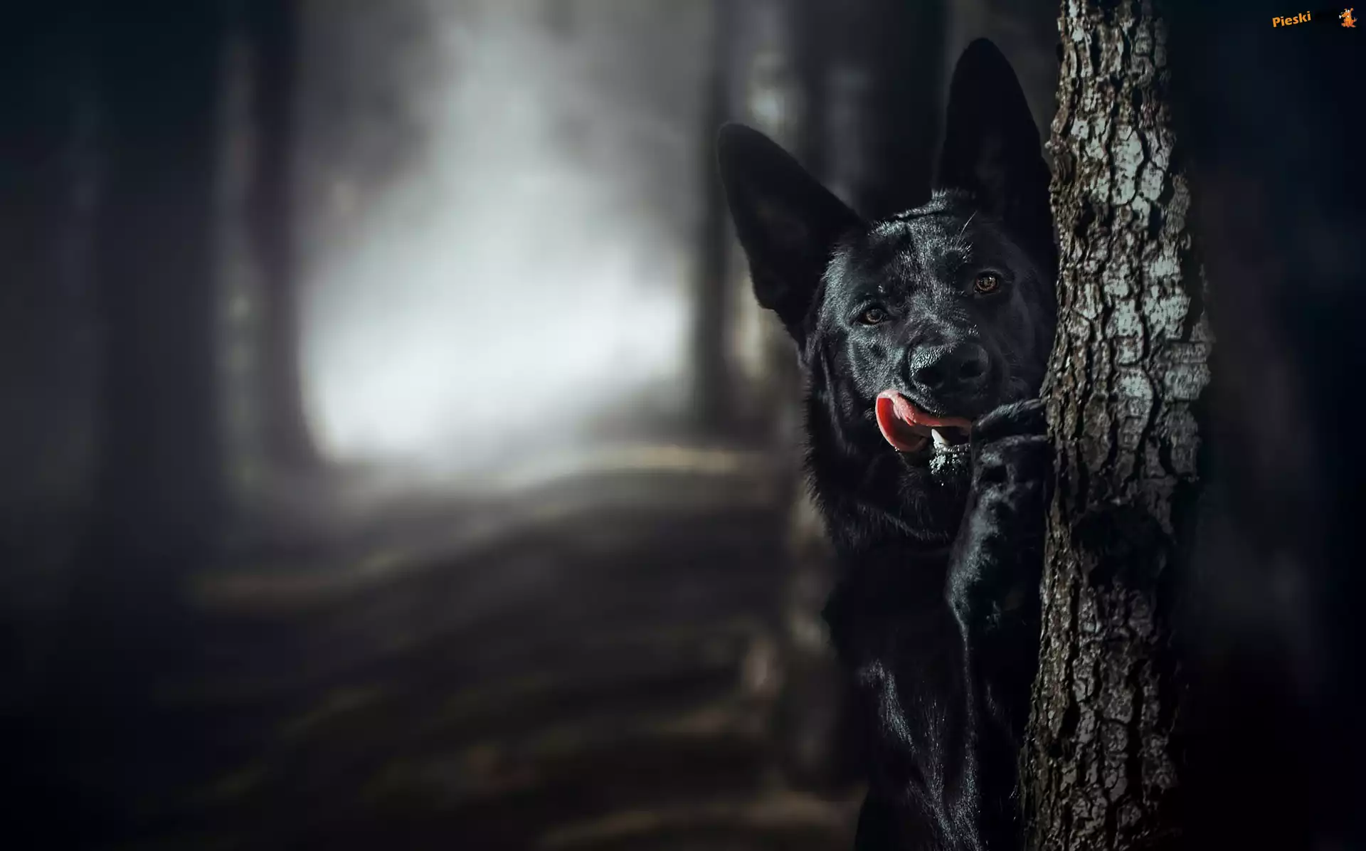 Las, Czarny, Owczarek niemiecki, Drzewo