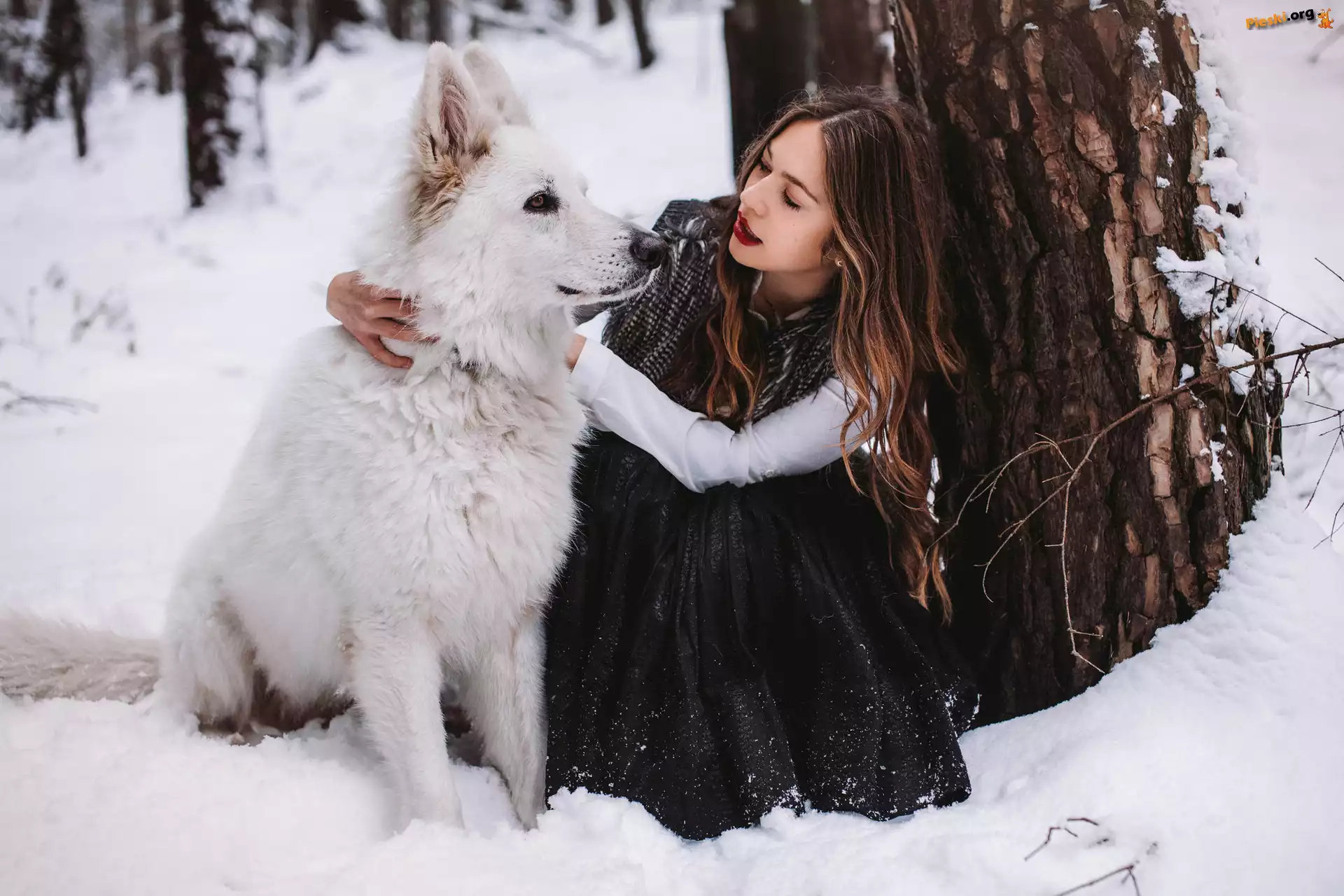 Las, Dziewczyna, Biały owczarek szwajcarski, Pieski