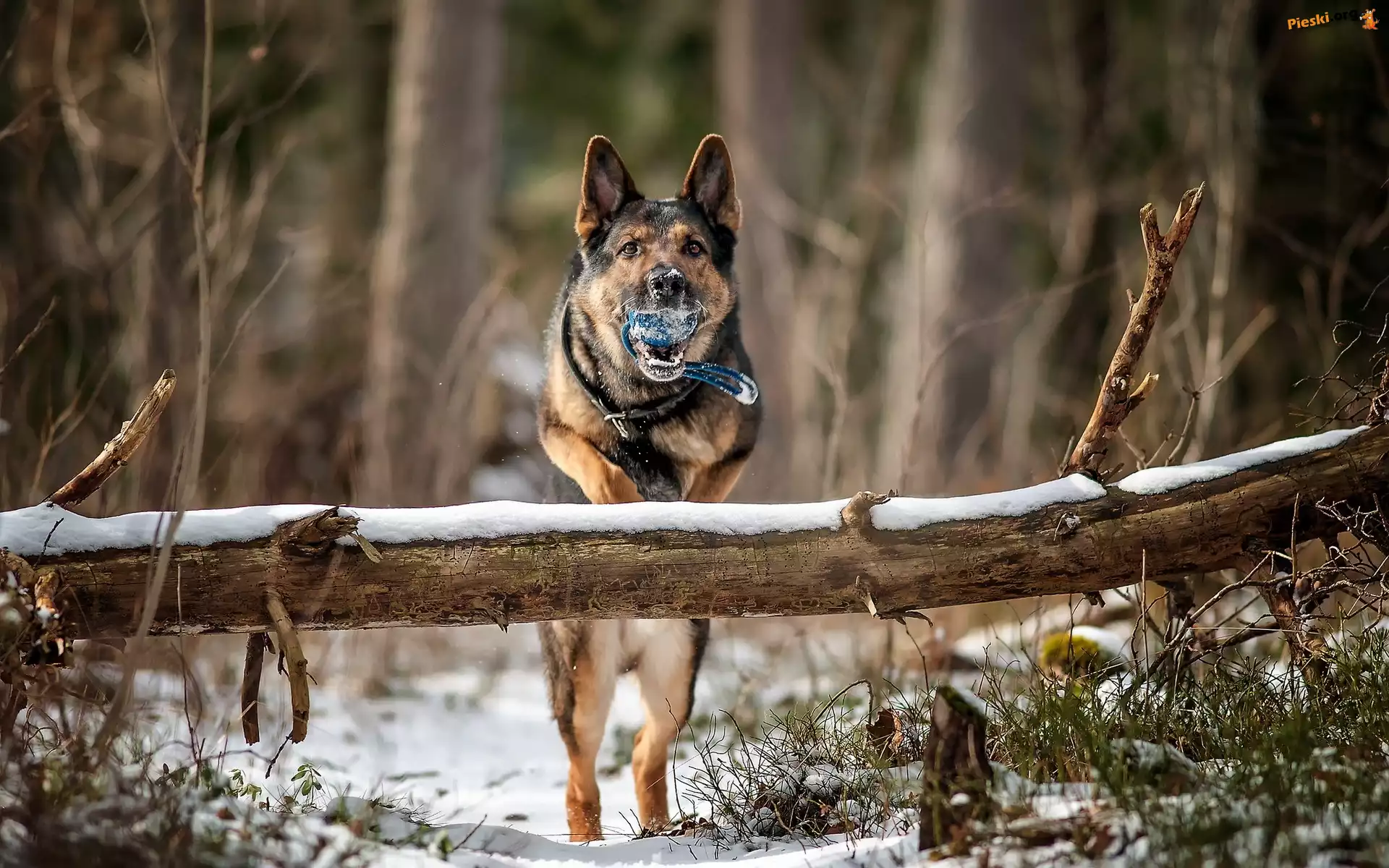 Las, Piłka, Pies, Zabawa, Zima, Pieski
