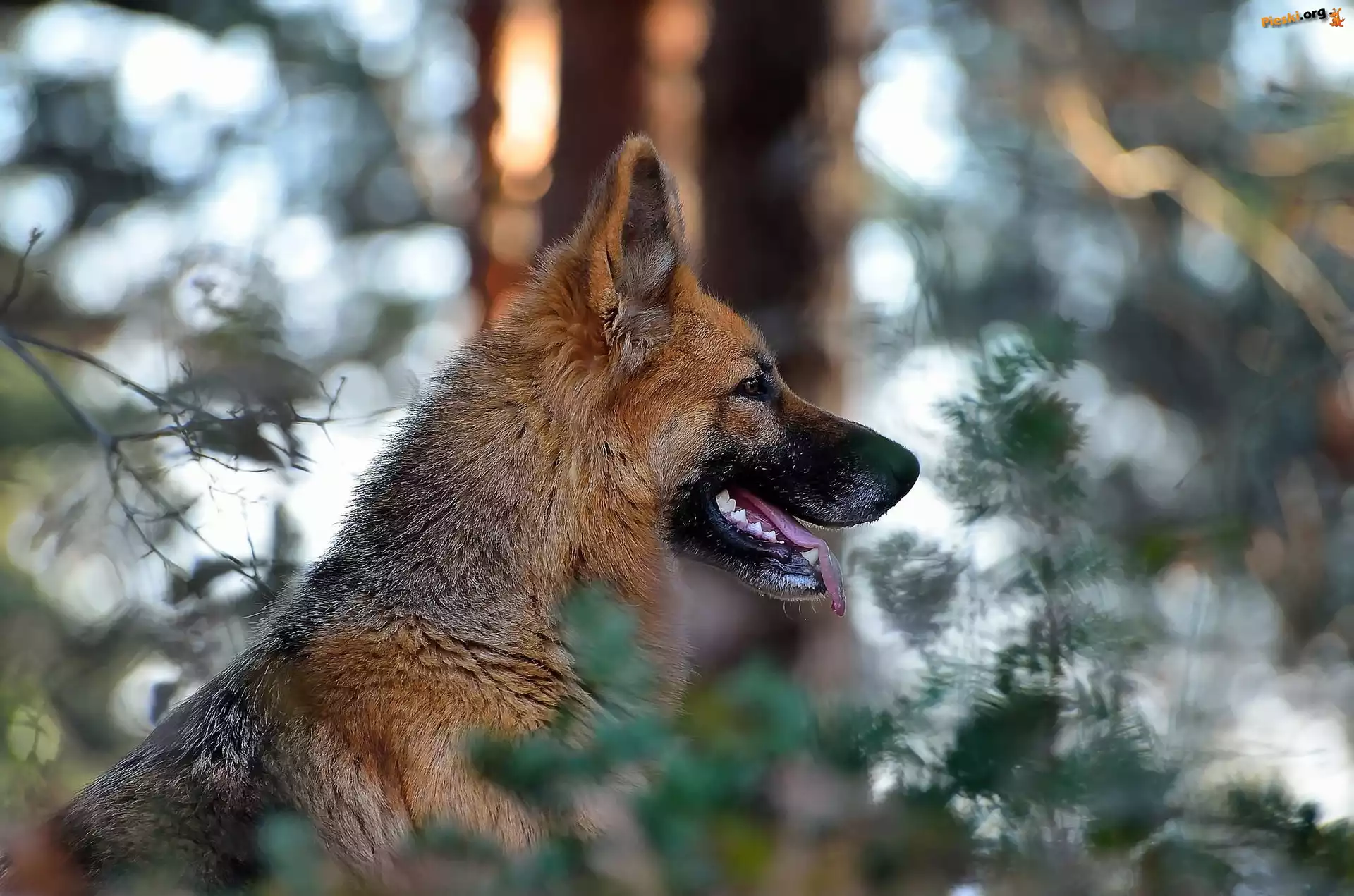 Liście, Owczarek Niemiecki, Pies, Drzewo, Rozmycie