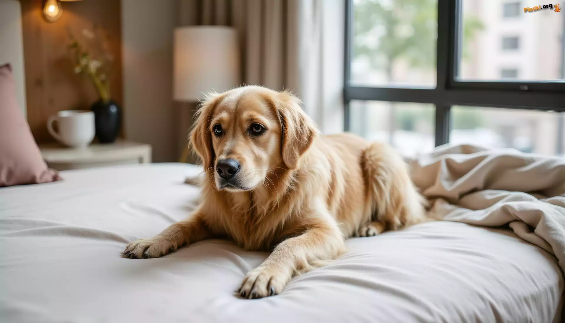 Okno, Łóżko, Pies, Golden retriever, Pieski