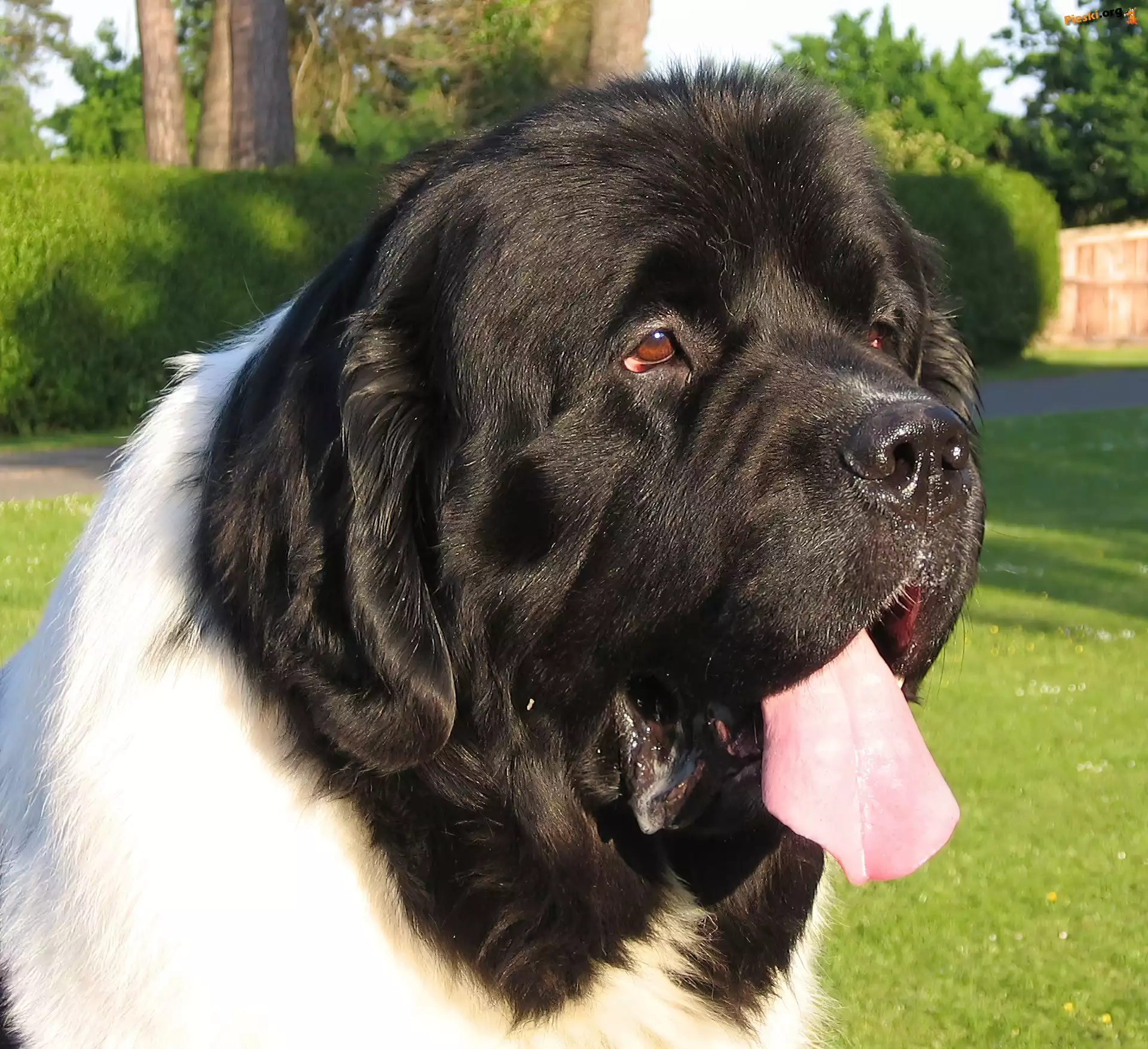 Kot, Pies, Słodkie mordka, Landseera trawa, zielona, Landseer biało-czarny, Landseer Morda, Landseera Piesek, Łąka pysk, Landseera biegnący, Landseer kratka, chustki, Landseer słodkie, szczeniaki, Landseery morda, Landseera trzy, Landseery