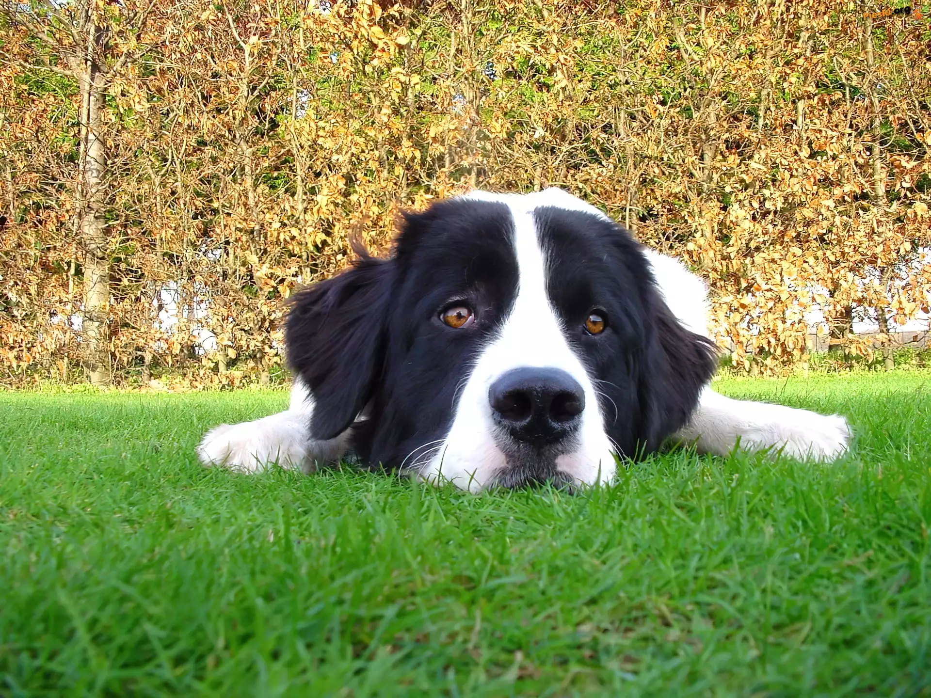 Kot, Pies, Słodkie mordka, Landseera trawa, zielona, Landseer biało-czarny, Landseer Morda, Landseera Piesek, Łąka pysk, Landseera biegnący, Landseer kratka, chustki, Landseer słodkie, szczeniaki, Landseery morda, Landseera trzy, Landseery