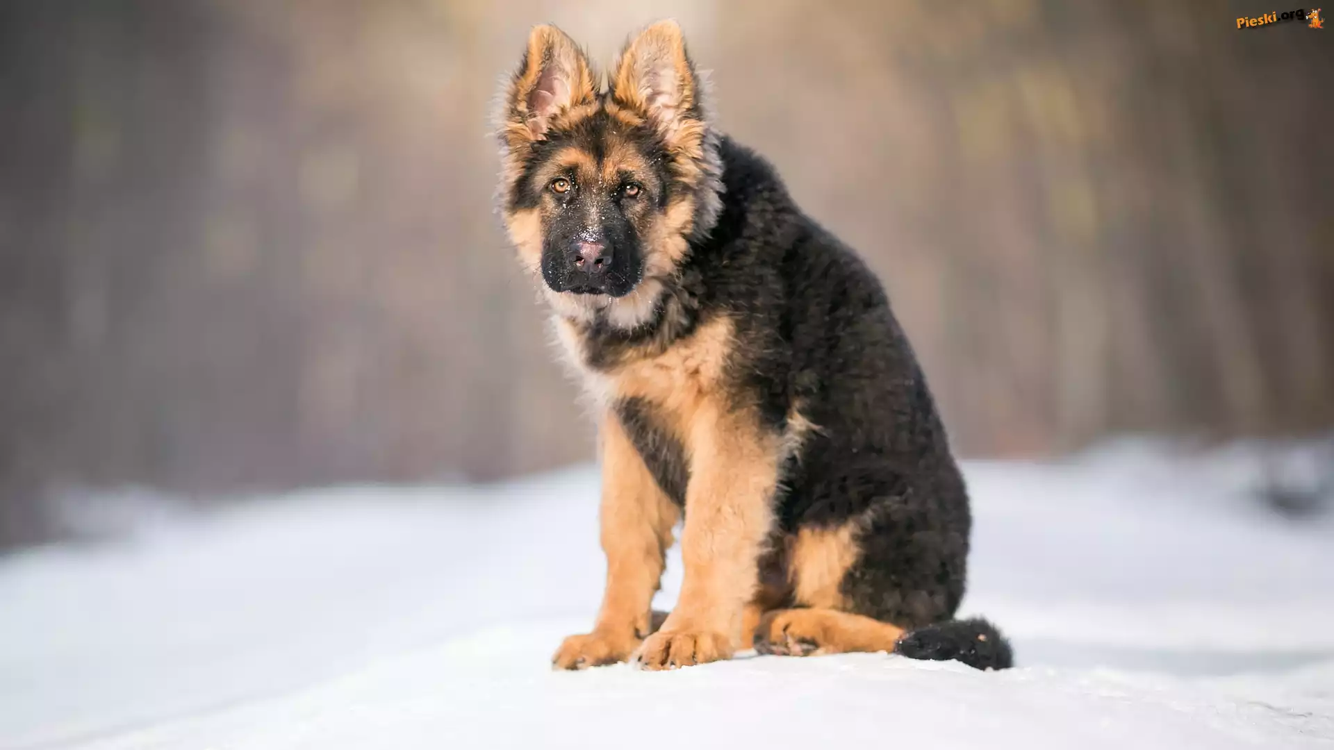 Owczarek niemiecki, Szczeniak, Śnieg, Pieski