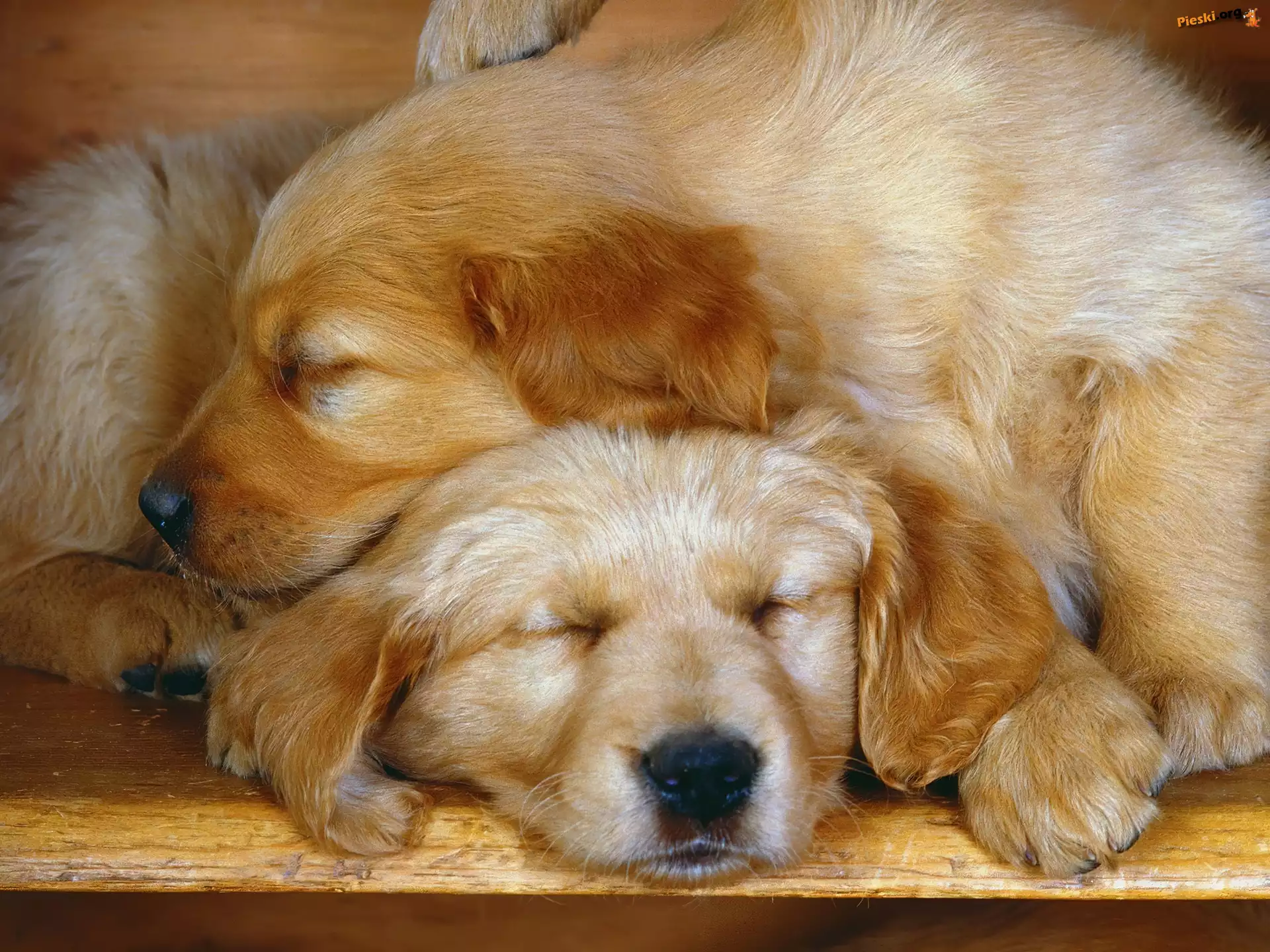 Golden retriever, Śpiące, Dwa, Psy, Szczeniak, Pieski
