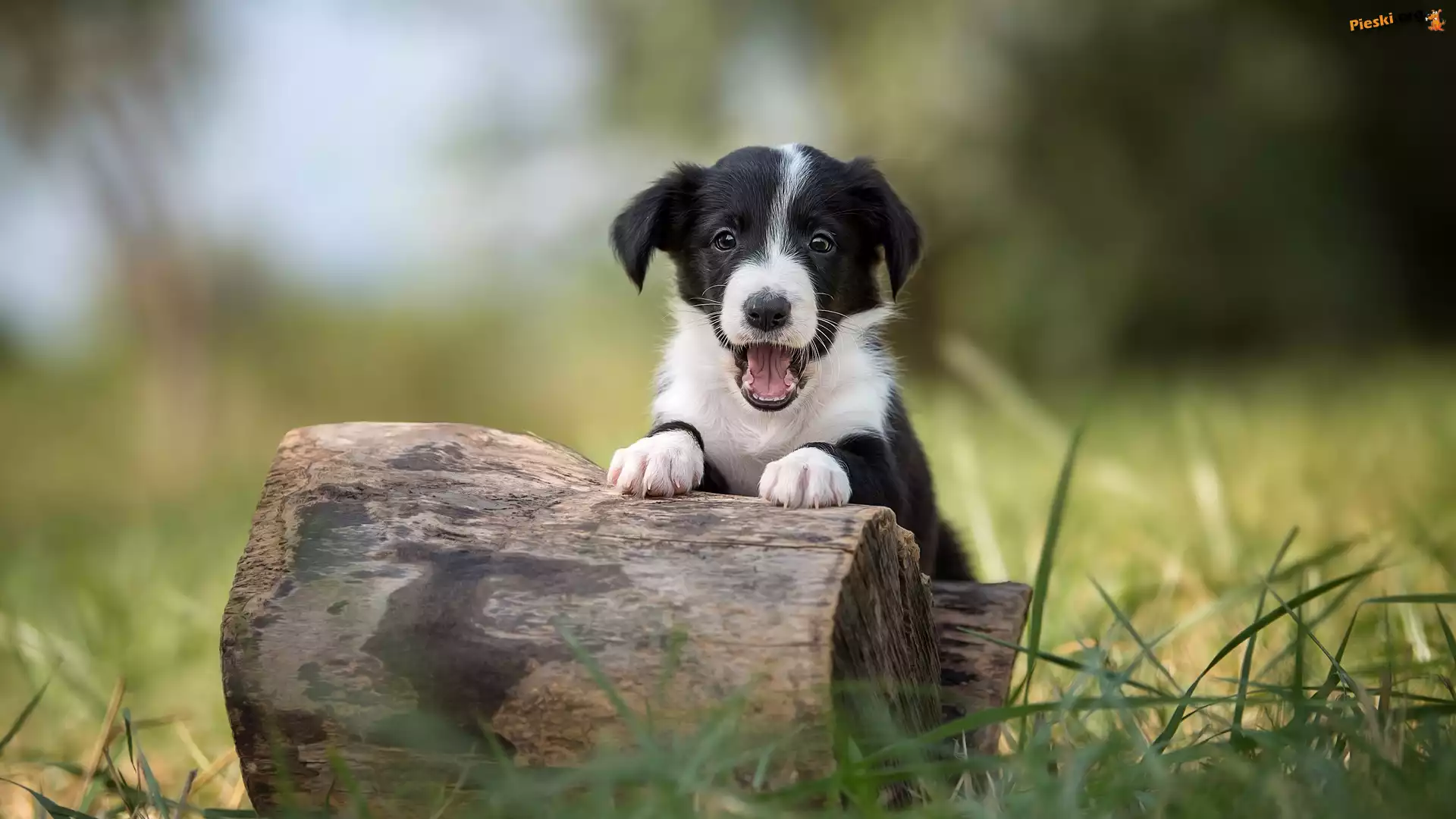 Pieniek, Border collie, Szczeniak, Pyszczek, Trawa