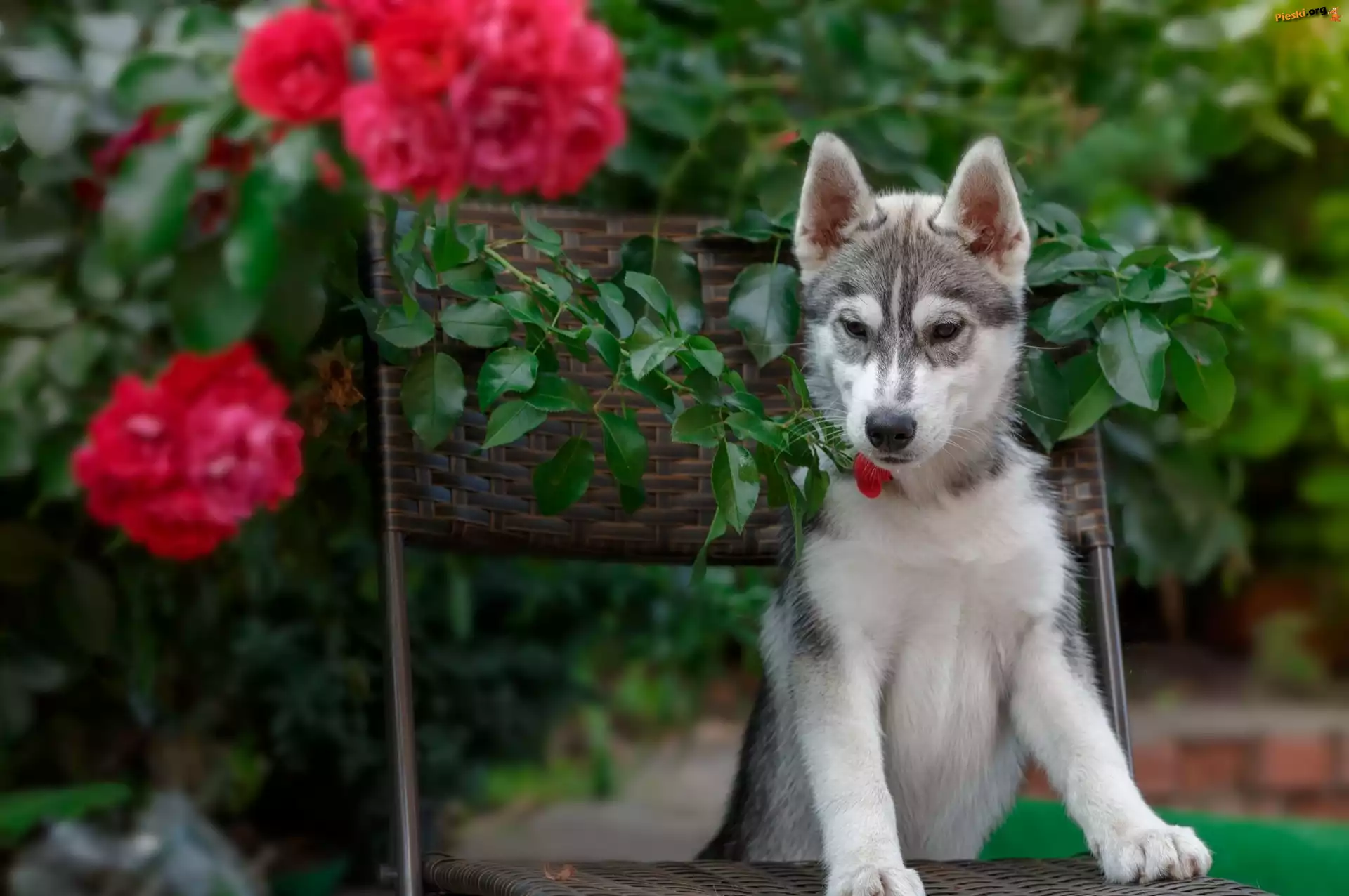Pies, Siberian husky, Krzesło, Pieski