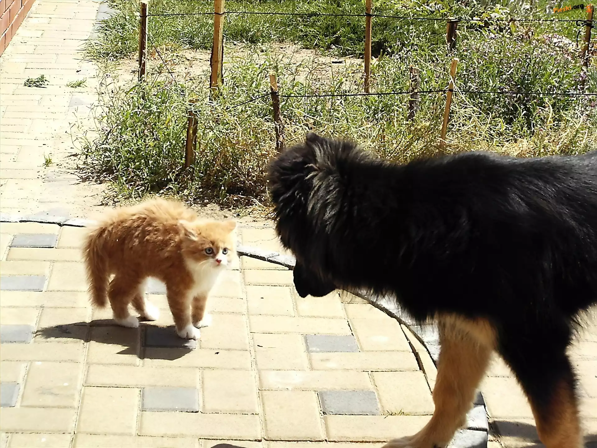 Kot, Pies, Ogród, Pieski