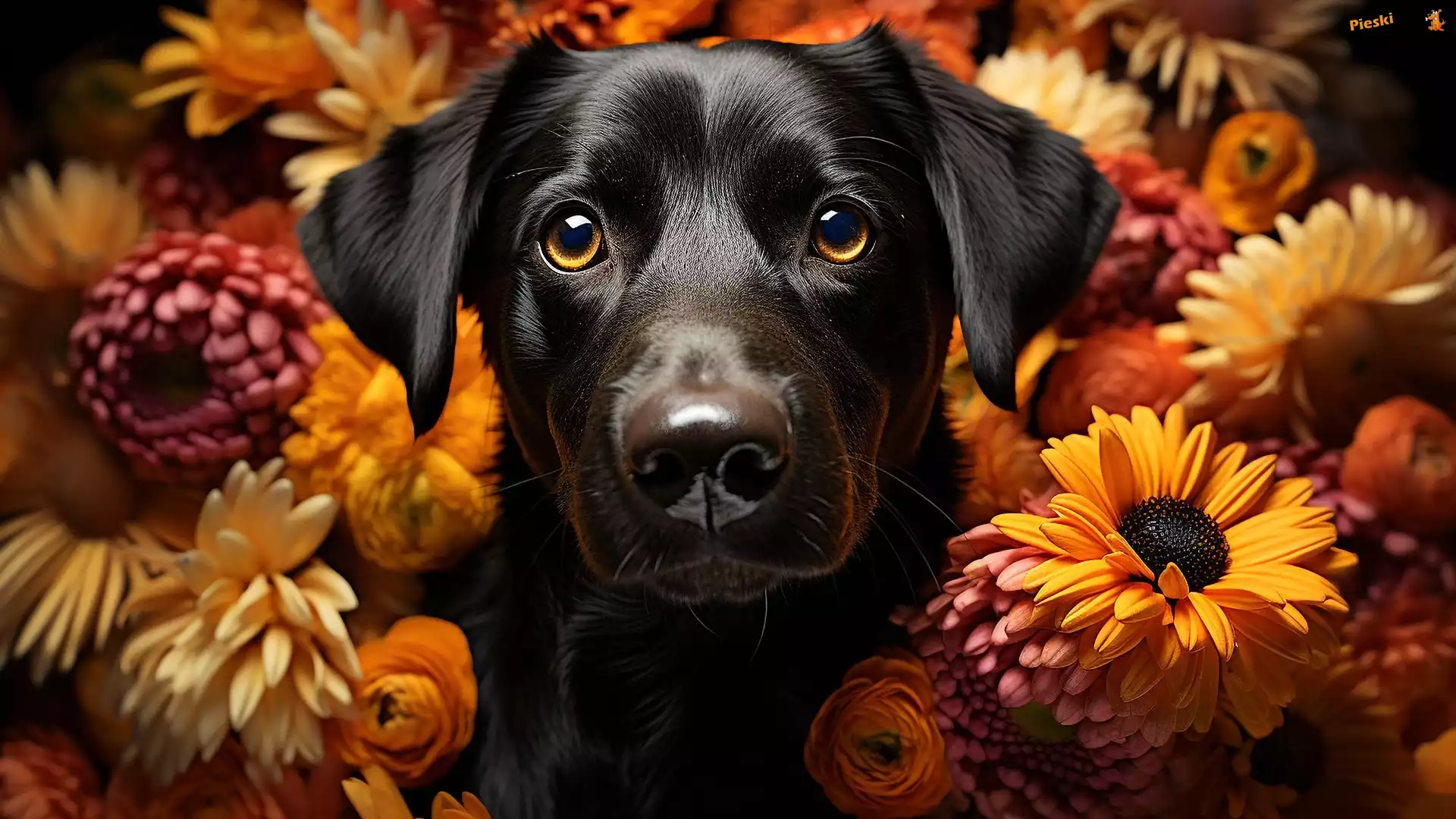 Kwiaty, Mordka, Czarny, Pies, Pieski