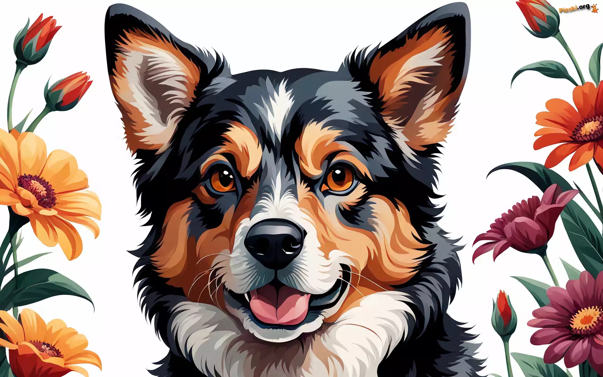 Kwiaty, Kolorowe, Grafika, Pies, Pieski