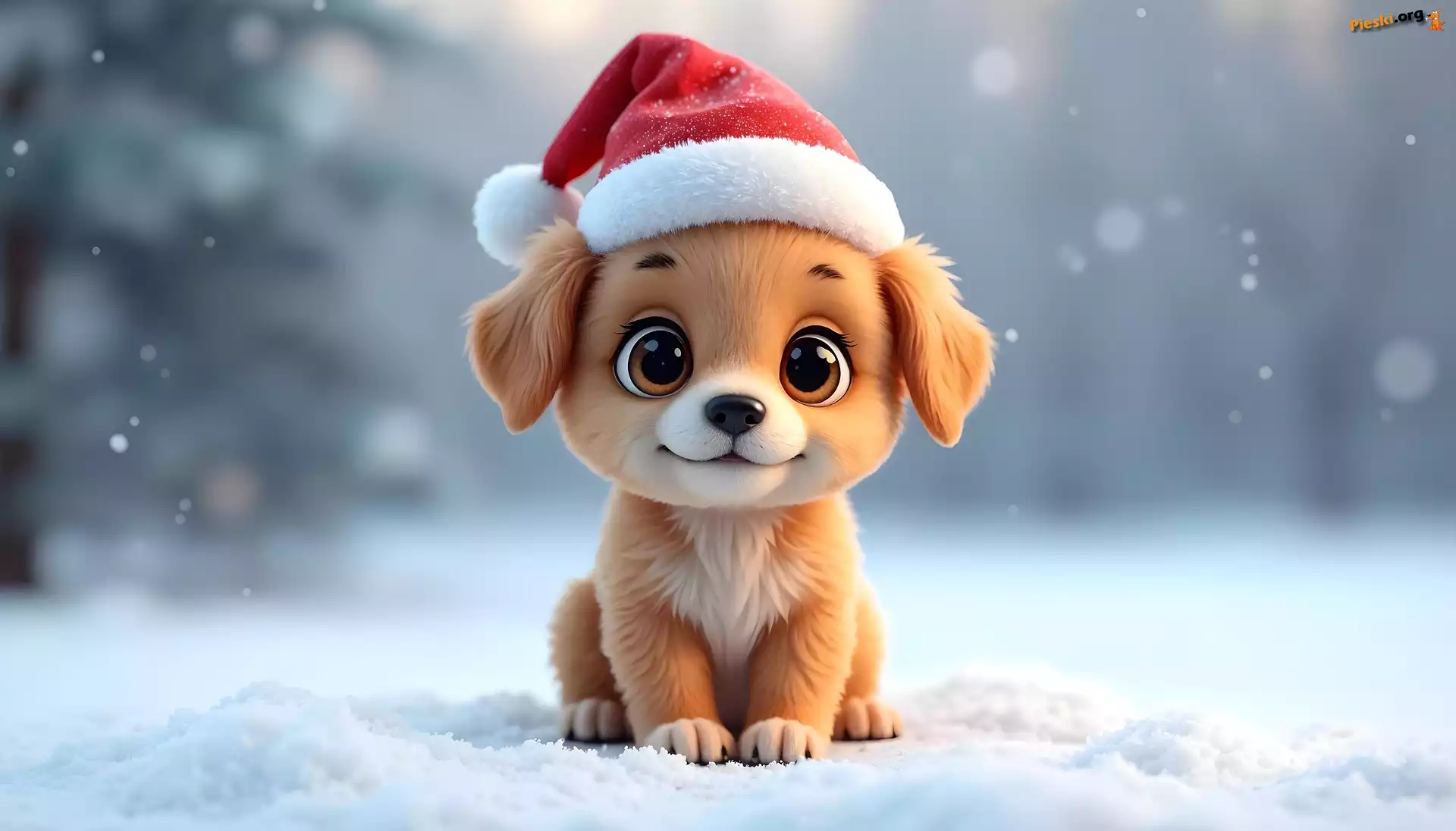Grafika, Szczeniak, Czapka, Pies, Śnieg, Mikołaja, Pieski
