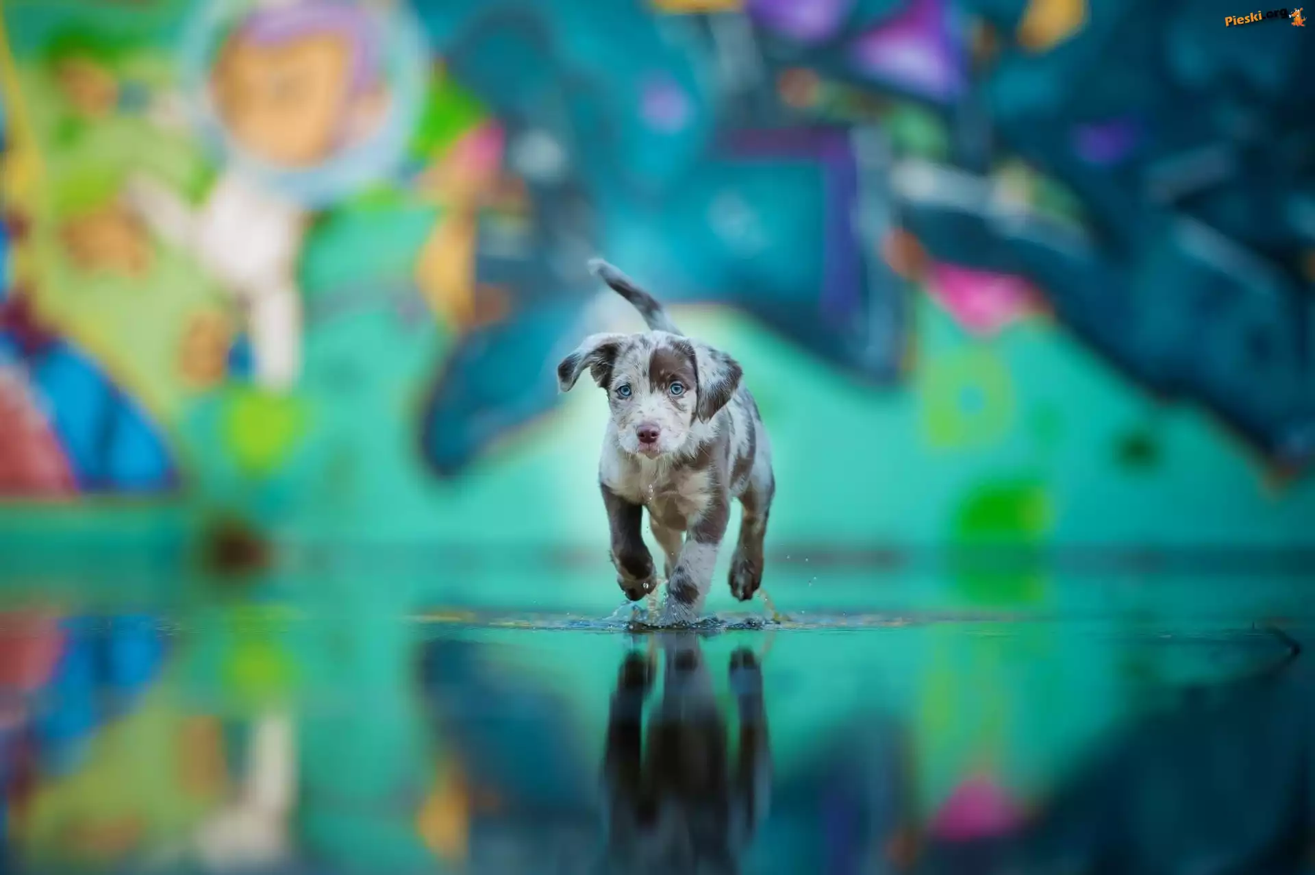 Oczy, Woda, Pies, Niebieski, Owczarek australijski-australian shepherd, Pieski