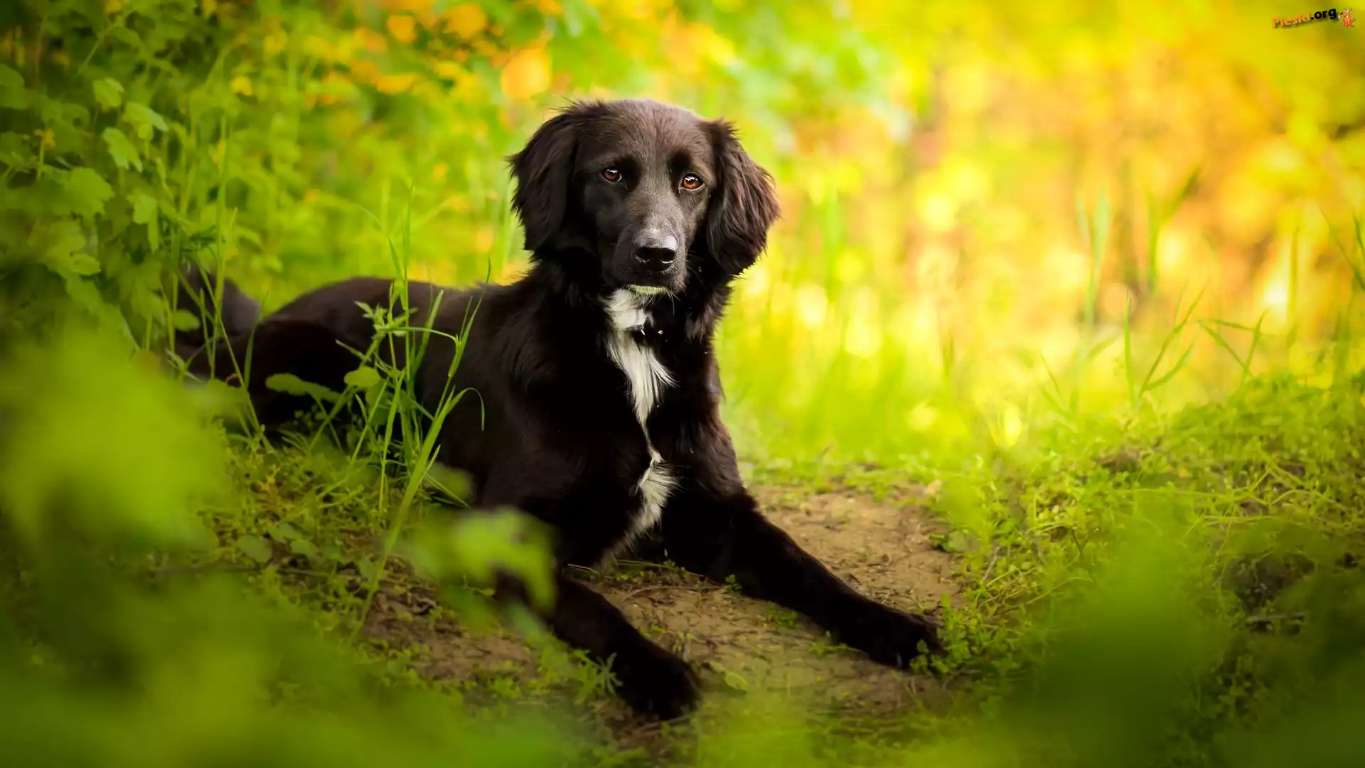 Rozmyte, ka, Border collie, Kwiaty, To Leonberger, Chopiec, Pies, Plaa ka, Pies, Border collie, Trawy