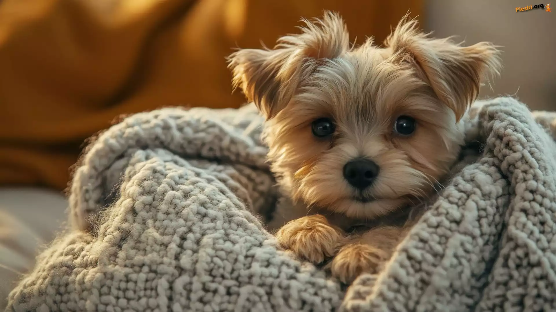 Yorkshire terrier, Koc, Pies, Spojrzenie, Szczeniak