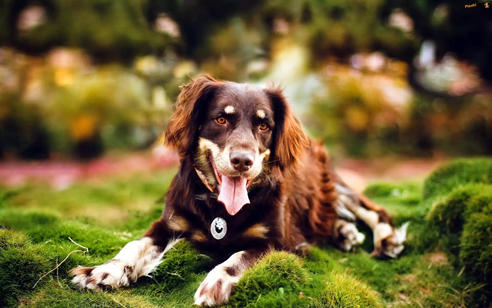 Rozmyte, ka, Border collie, Kwiaty, To Leonberger, Chopiec, Pies, Plaa ka, Pies, Border collie, Trawy