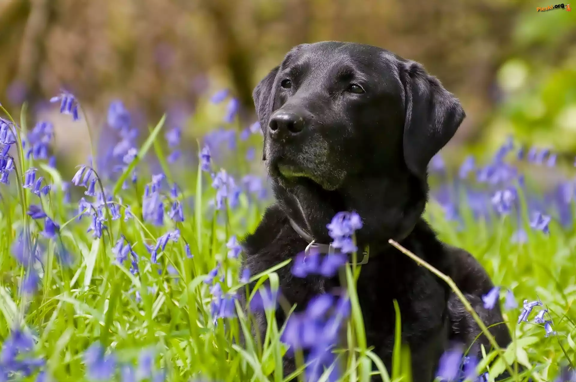 Rozmyte, ka, Border collie, Kwiaty, To Leonberger, Chopiec, Pies, Plaa ka, Pies, Border collie, Trawy