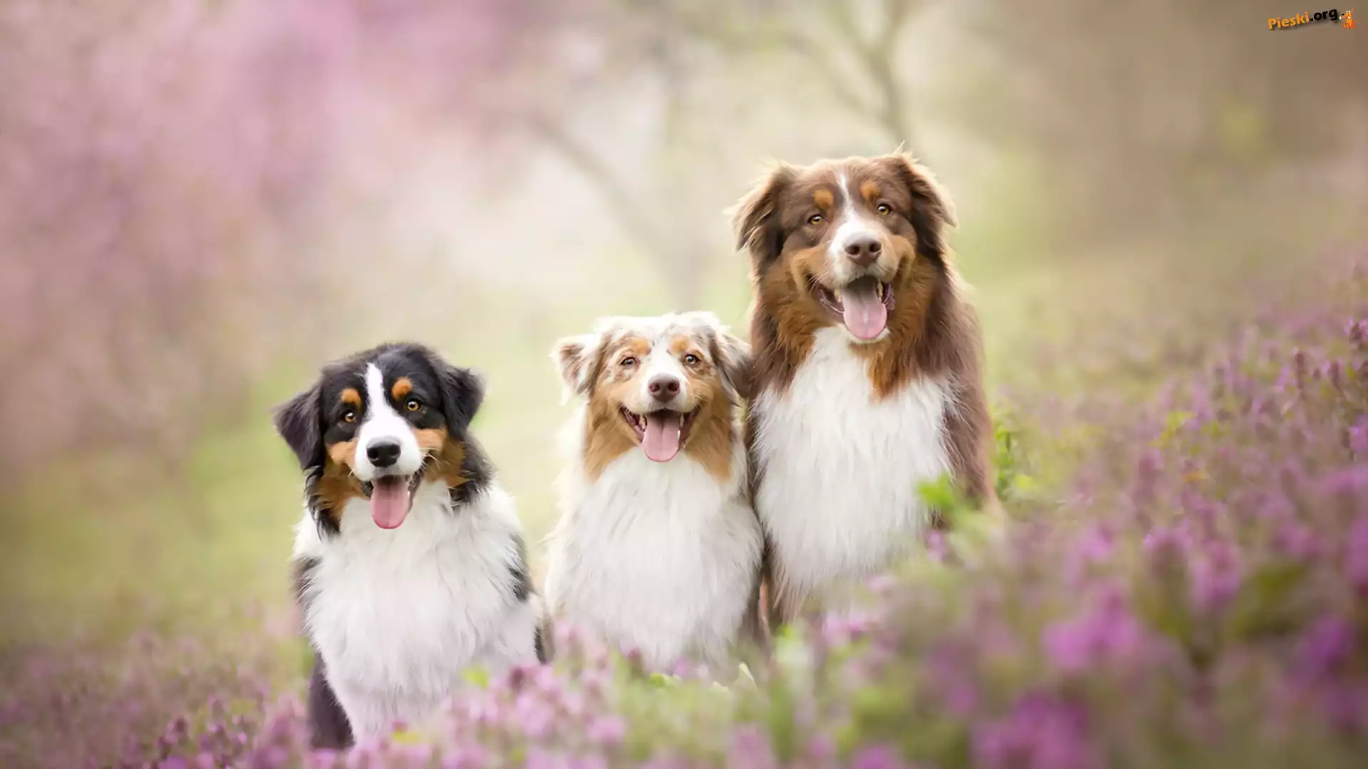Rozmyte, ka, Border collie, Kwiaty, To Leonberger, Chopiec, Pies, Plaa ka, Pies, Border collie, Trawy