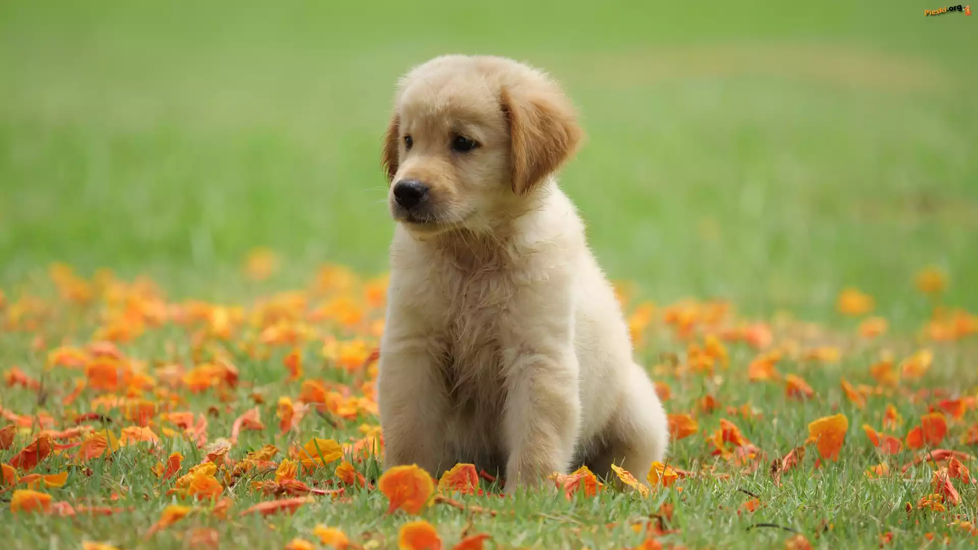 Łąka, Szczeniak, Golden retriever, Liście