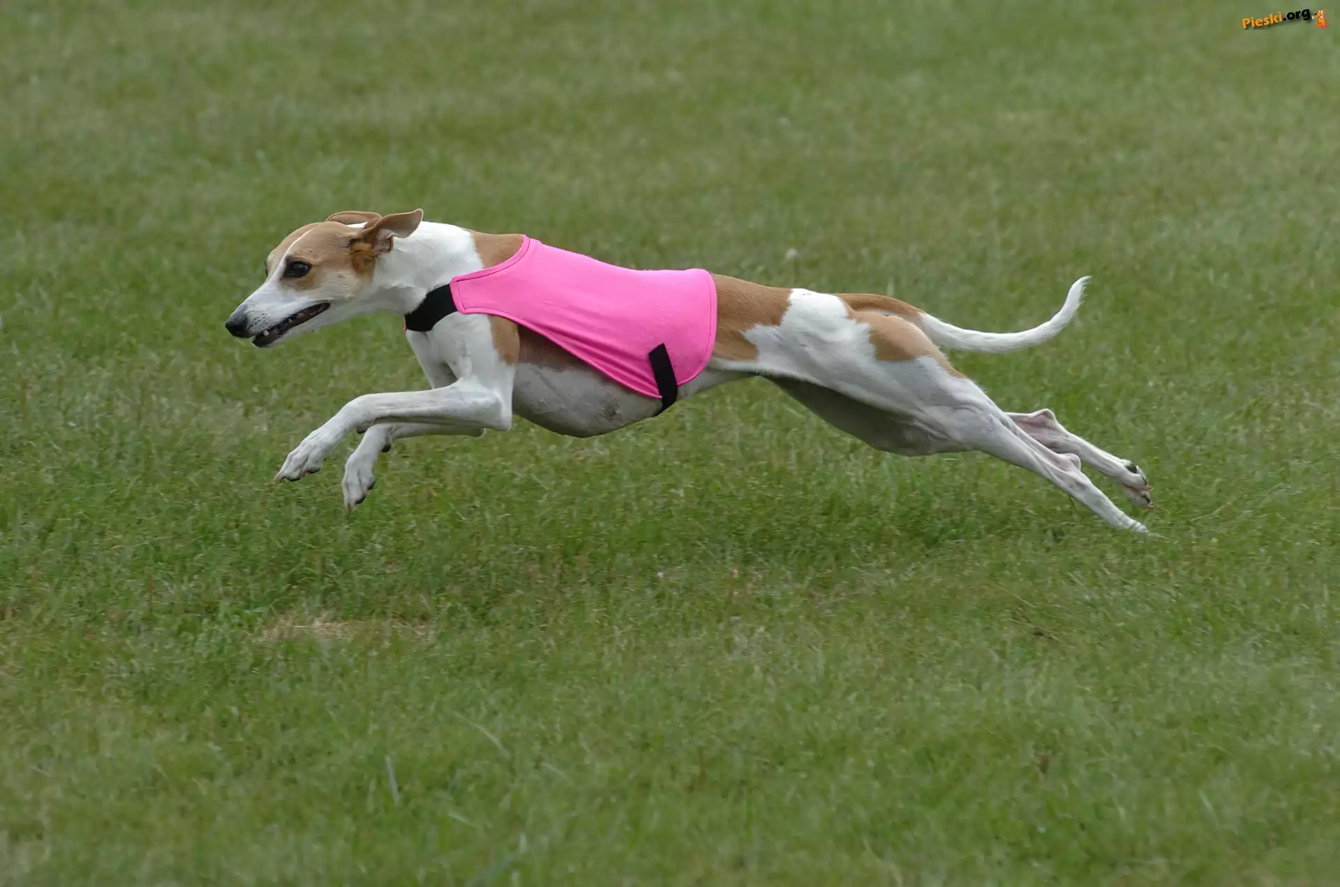 Whippet Whippet, różowe, ubranko Whippet, zielona, trawa