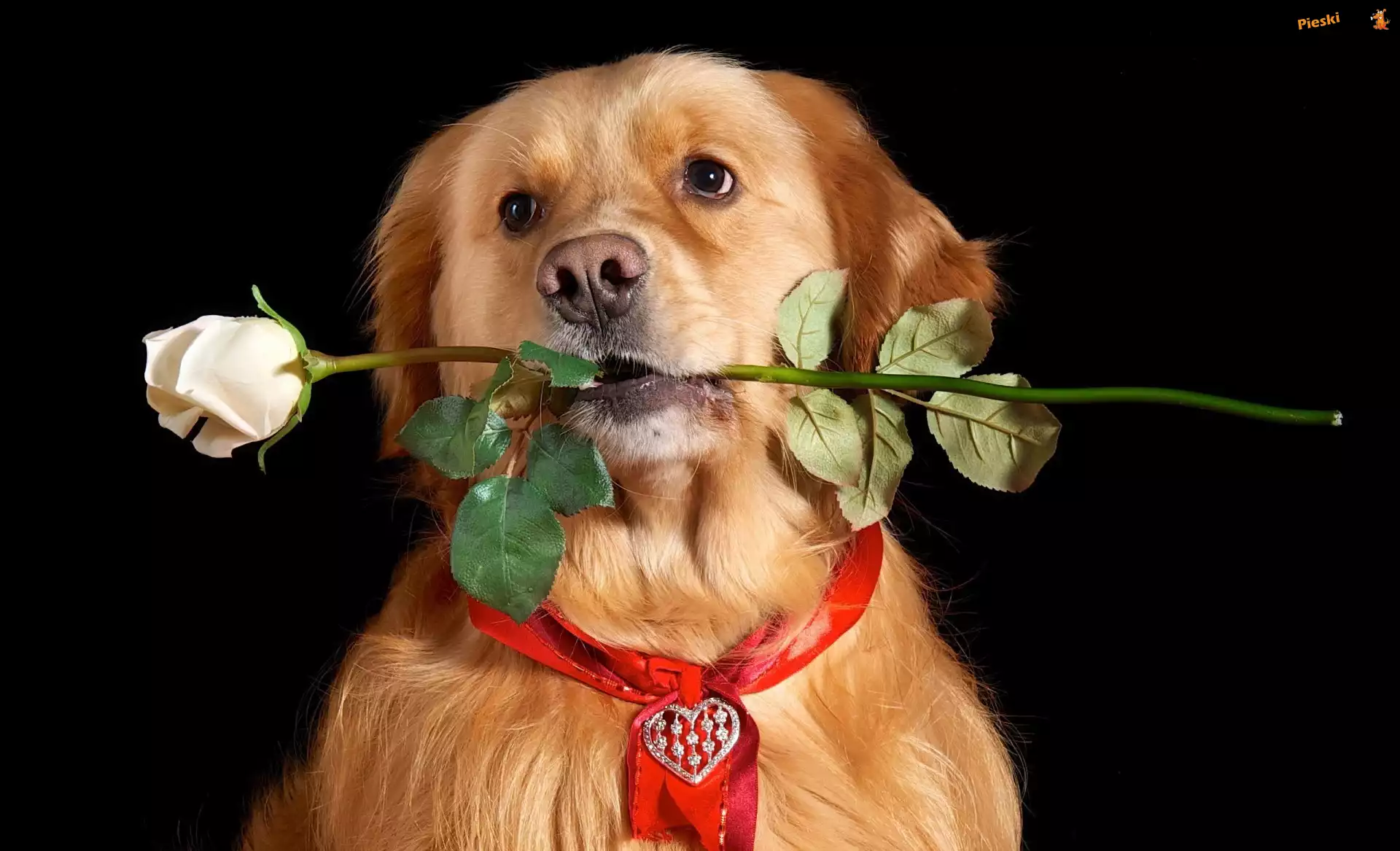 Serduszko, Biała, Pies, Róża, Walentynki