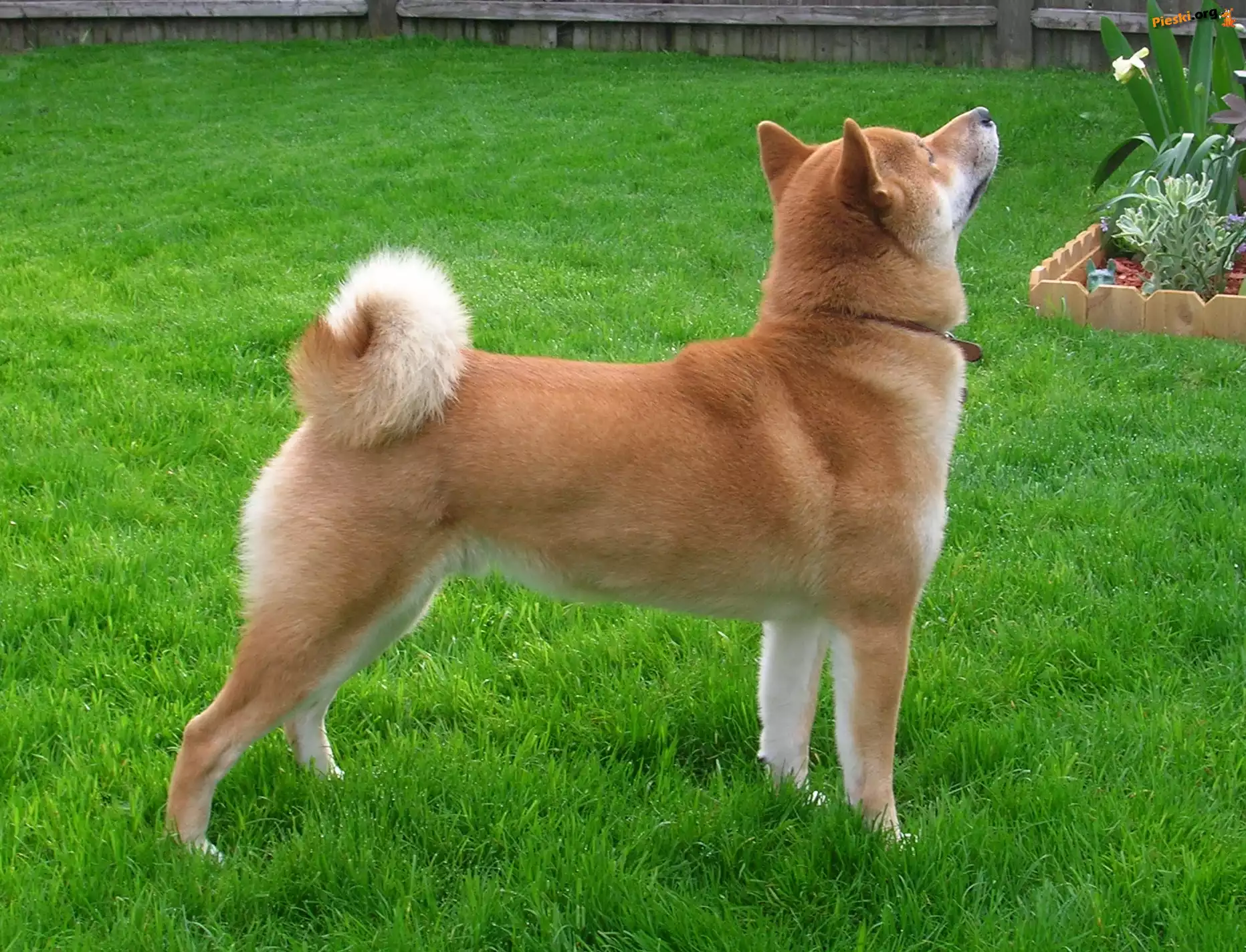 Shiba inu, soczysto-zielona, trawa