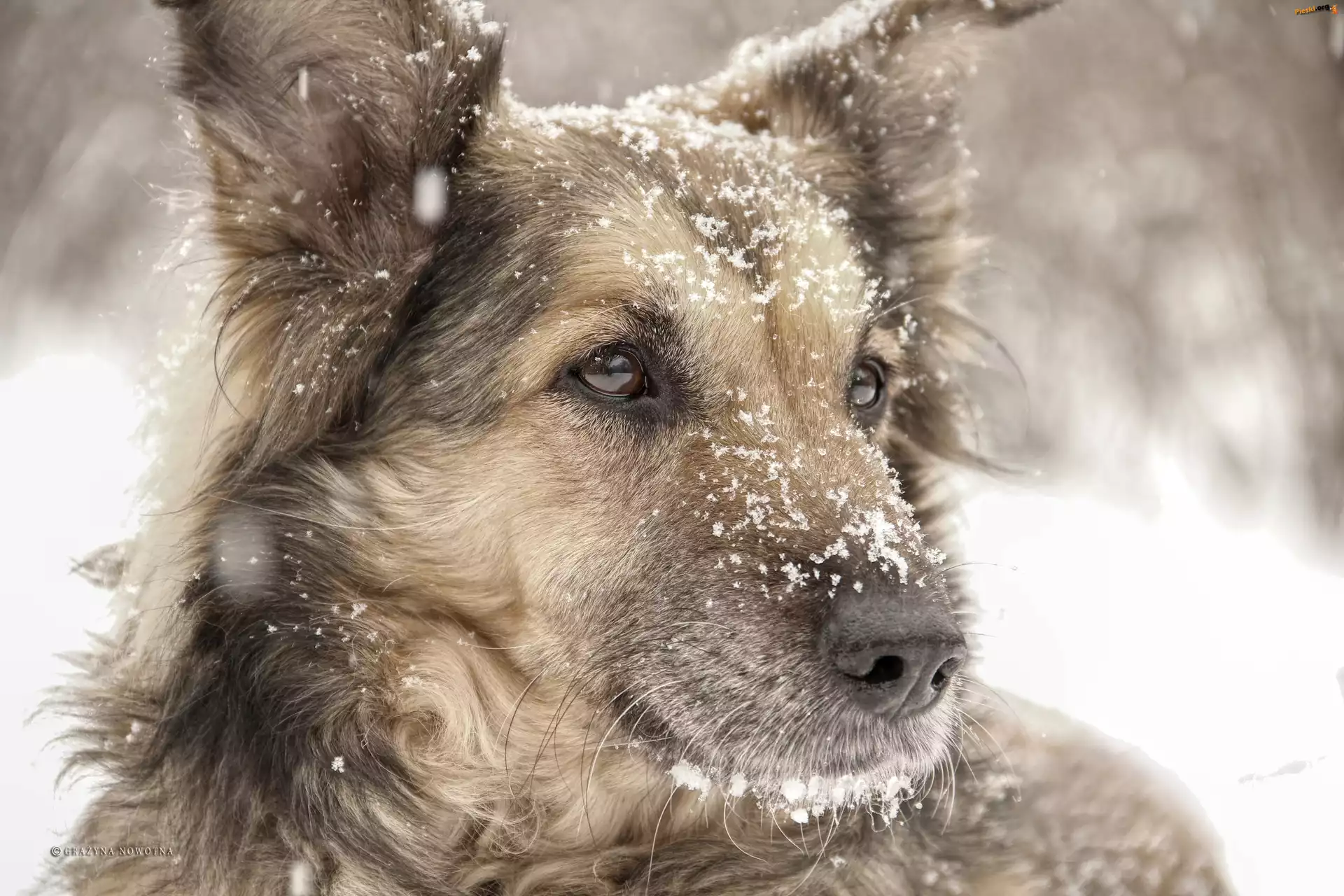 Śnieg, Suczka, Pies, Shila, Zima, Pieski