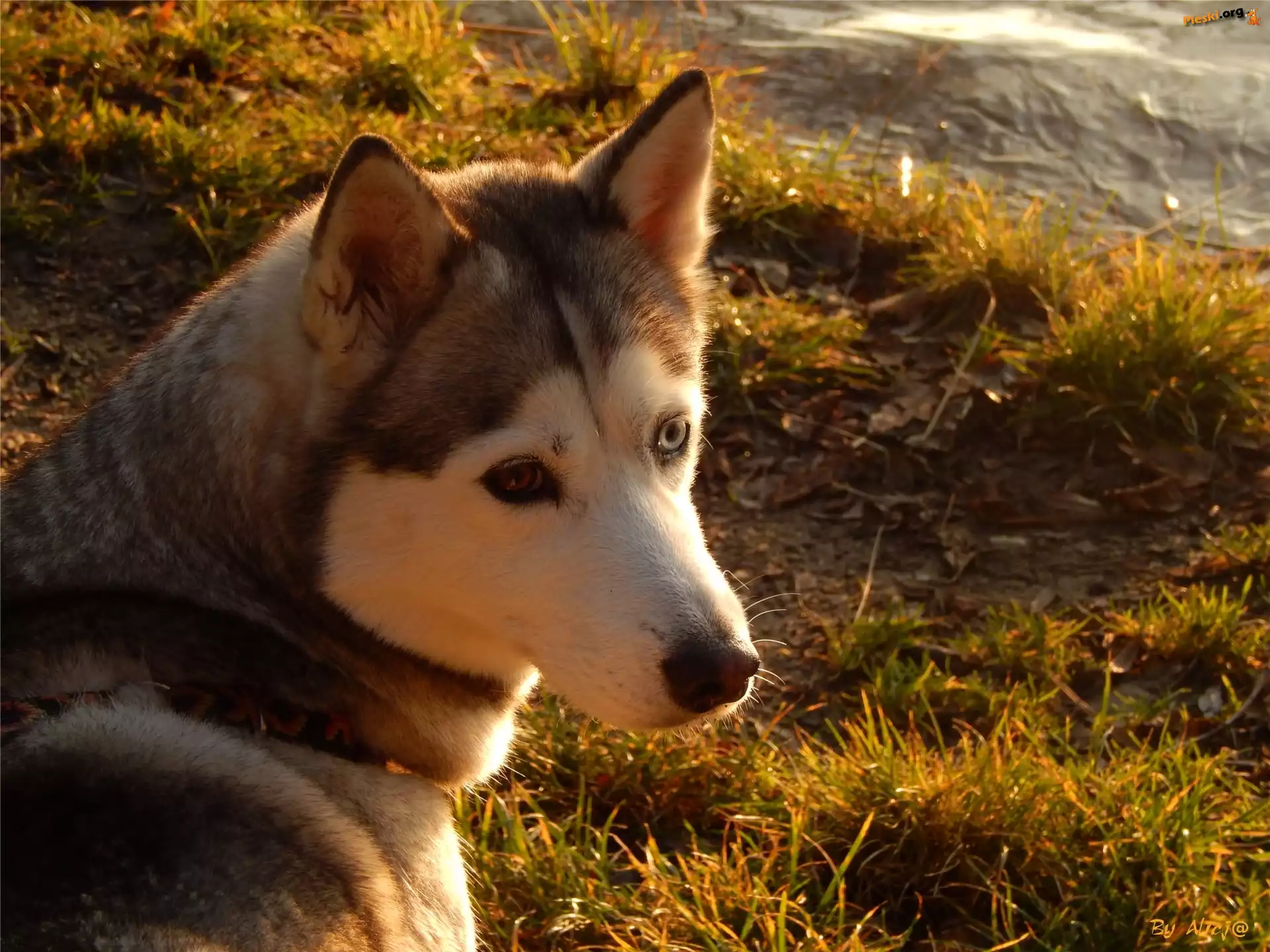 Husky, Spojrzenie, Trawa