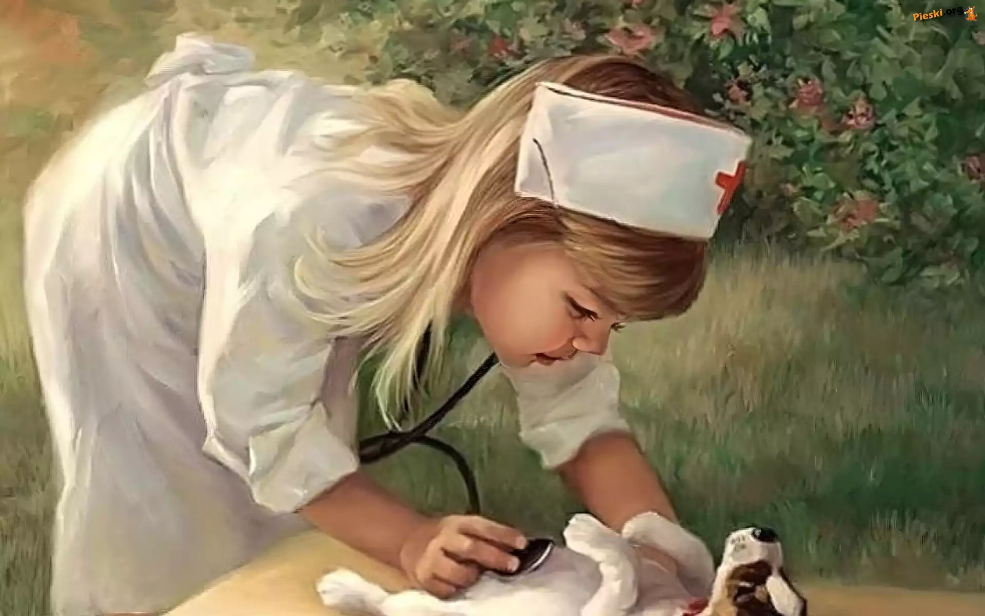 Stetoskop, Pies, Dziewczyna, Szczeniak, Pielęgniarka, Pieski