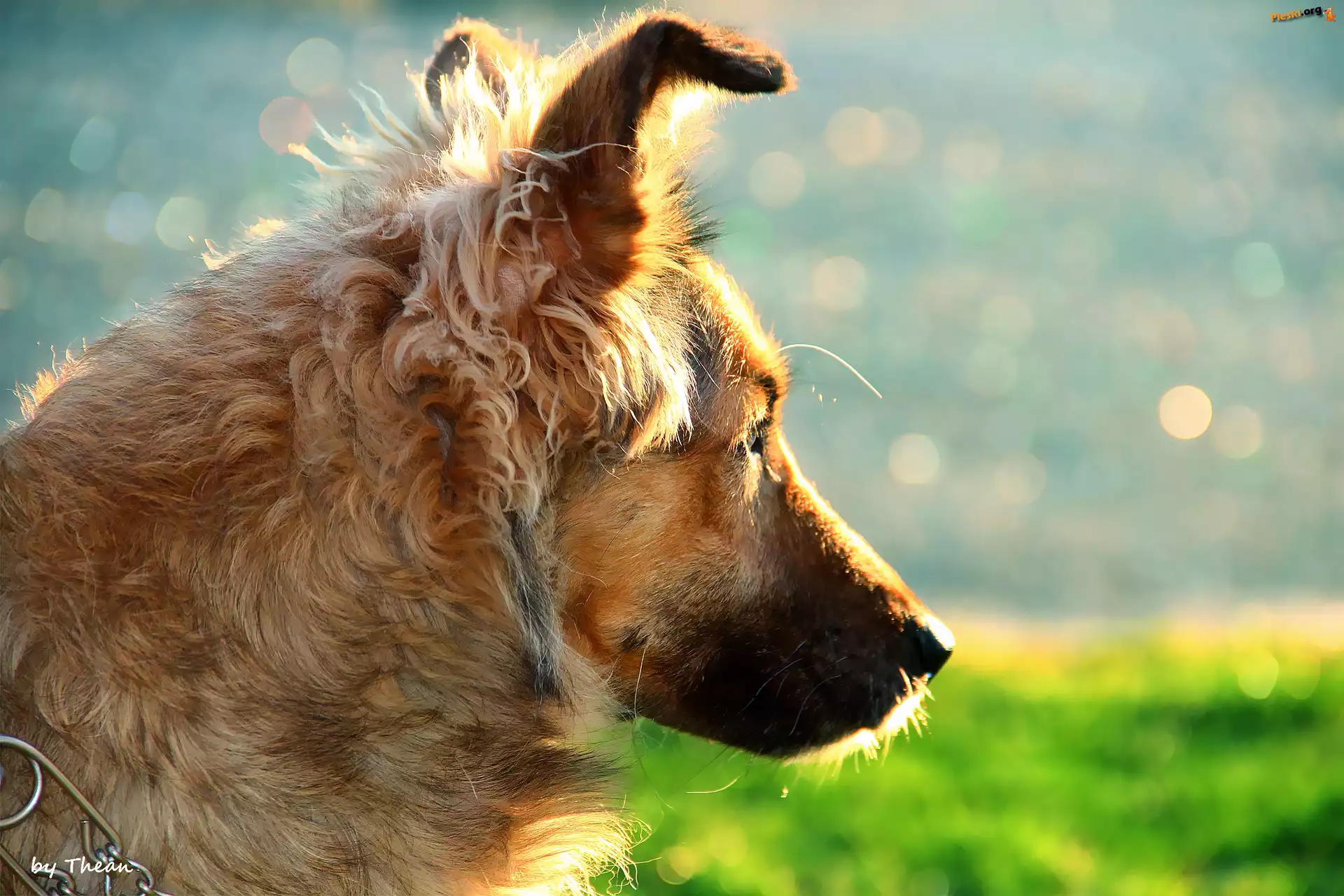 Rozmyte, ka, Border collie, Kwiaty, To Leonberger, Chopiec, Pies, Plaa ka, Pies, Border collie, Trawy