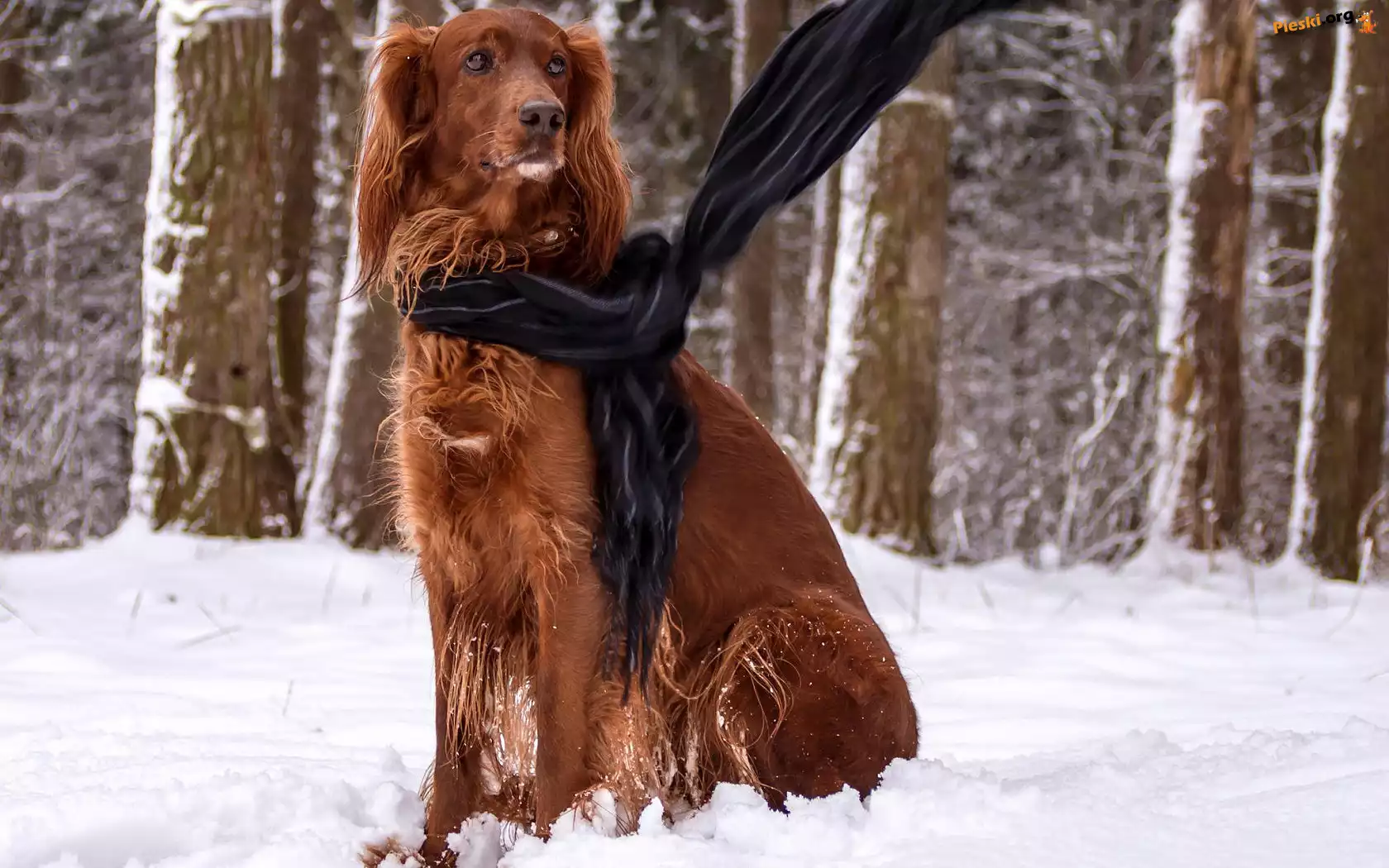 Szal, Seter, Irlandzki, Śnieg