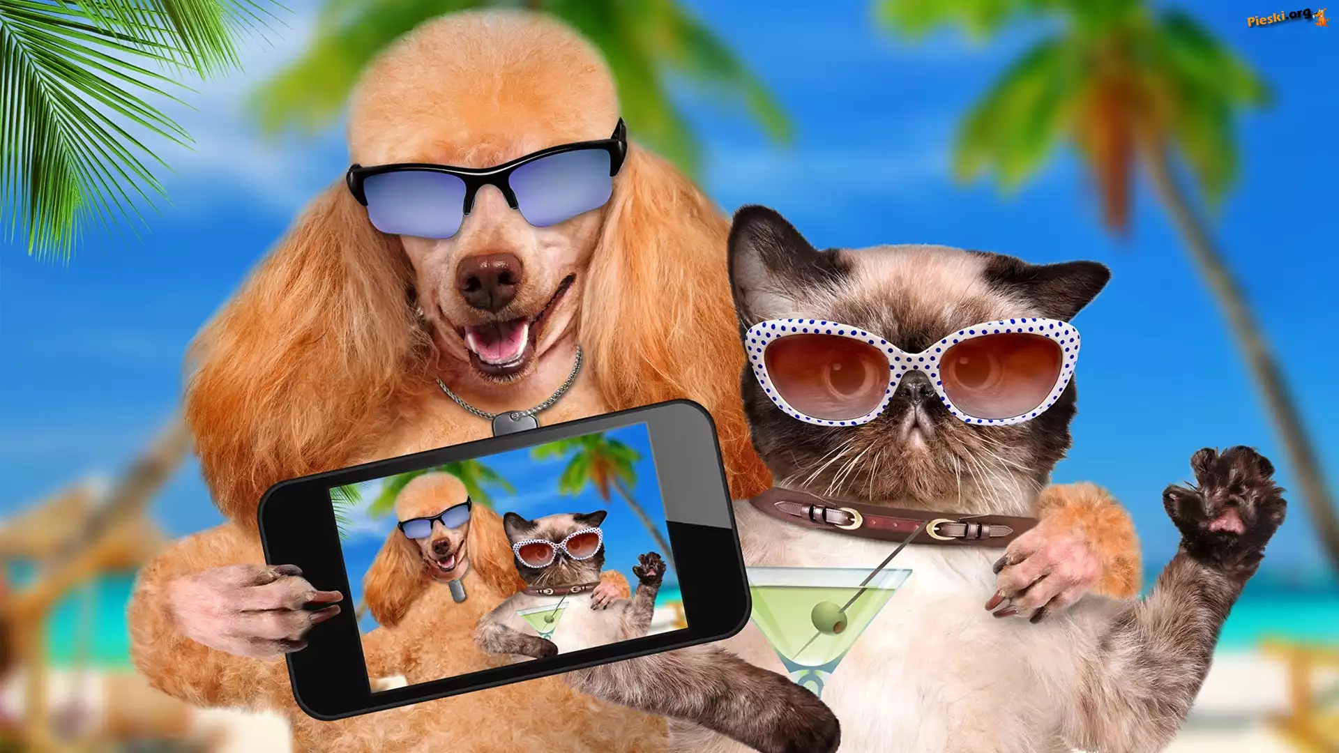 Telefon, Kot, Pudel, Selfie, Okulary, Pieski
