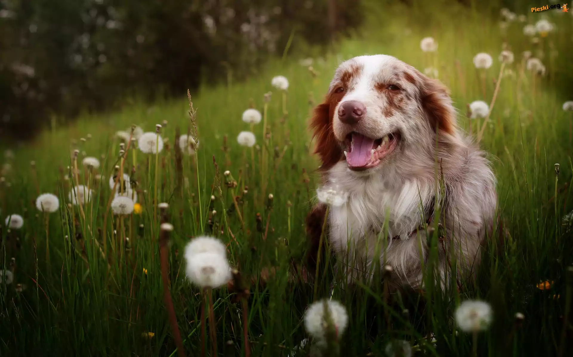 Trawa, Owczarek australijski, Łąka, Mniszek pospolity, Pieski
