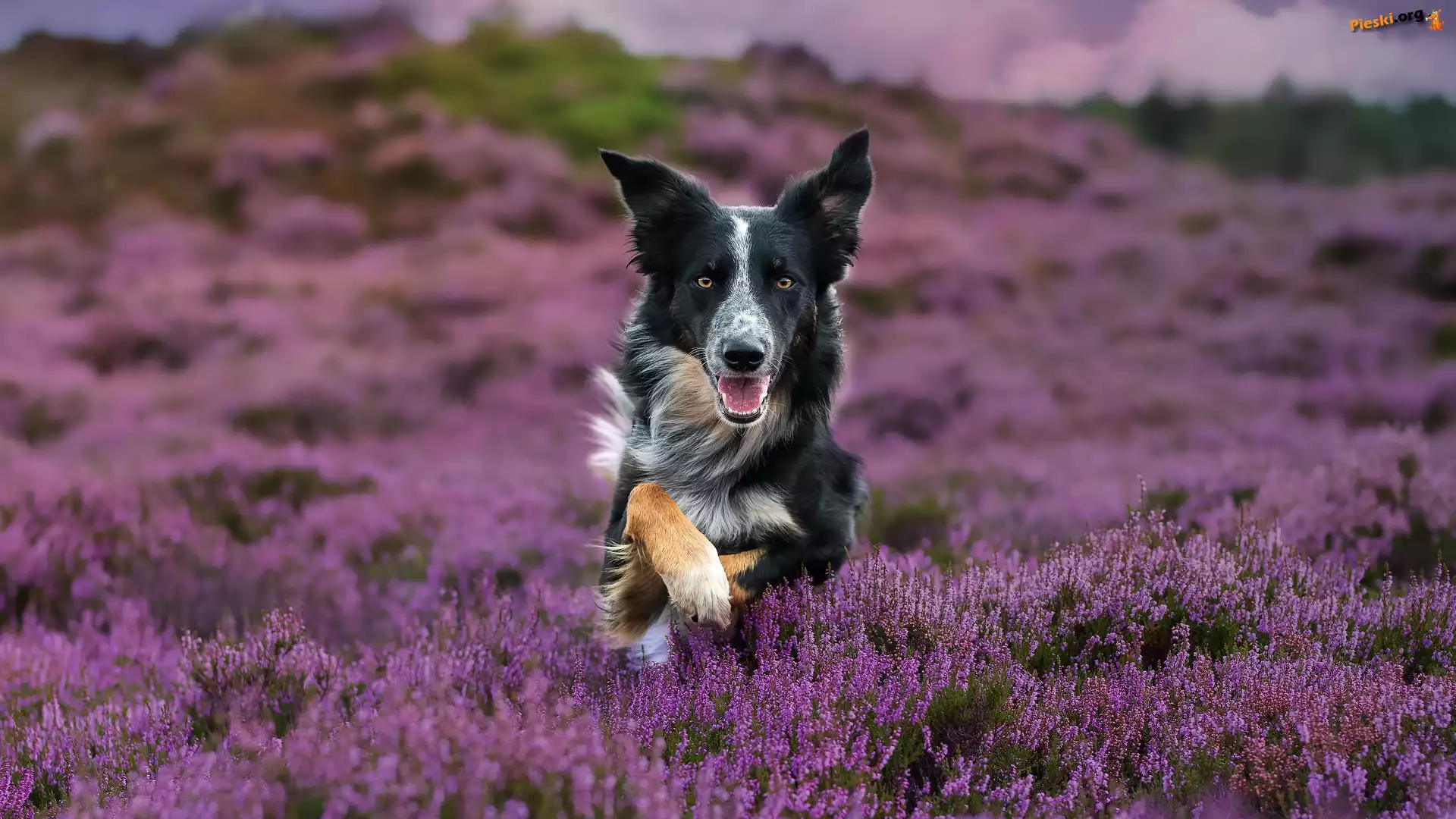Wrzosy, Pies, Border collie, Wrzosowisko