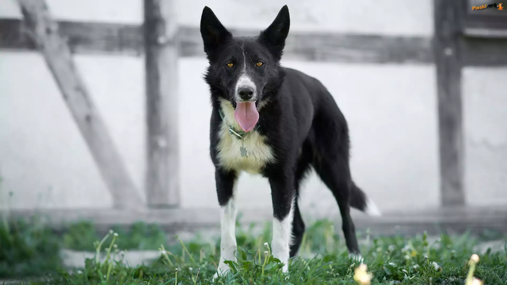 Rozmyte, ka, Border collie, Kwiaty, To Leonberger, Chopiec, Pies, Plaa ka, Pies, Border collie, Trawy