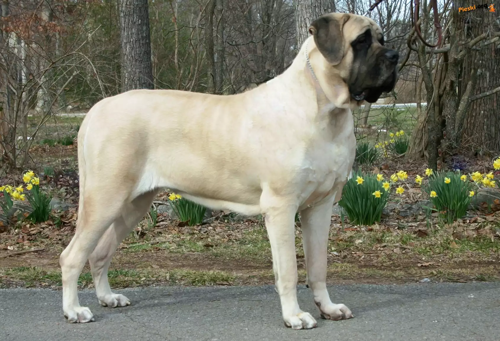 żółte, Mastif angielski, Mastiff, kwiatki
